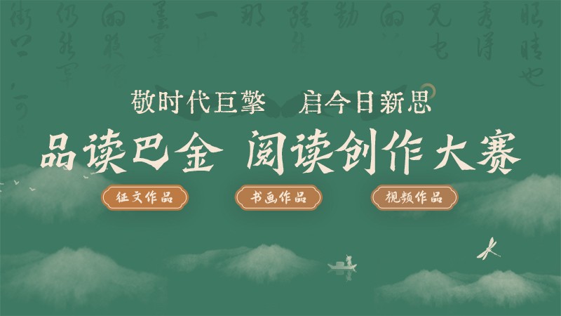 大赛由江苏省图书馆学会、上海市图书馆学会、四川省图书馆学会联合主办,南京图书馆、南京大学图书馆、南京艺术学院图书馆、上海市图书馆学会阅读推广委员会、复旦大学图书馆、四川省图书馆、四川大学图书馆承办,阅途文化集团有限公司协办,以“敬时代巨擘 启今日新思”为主题,通过『阅途数字云』、『设计师之家数字图书馆』线上公开征集围绕品读巴金主题创作的征文、书画、视频三类作品,旨在引导广大读者关注阅读、爱上阅读、传播阅读。