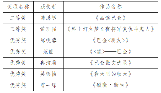 喜报|热烈祝贺我校学生在参加"品读巴金阅读创作大赛"中喜获佳绩