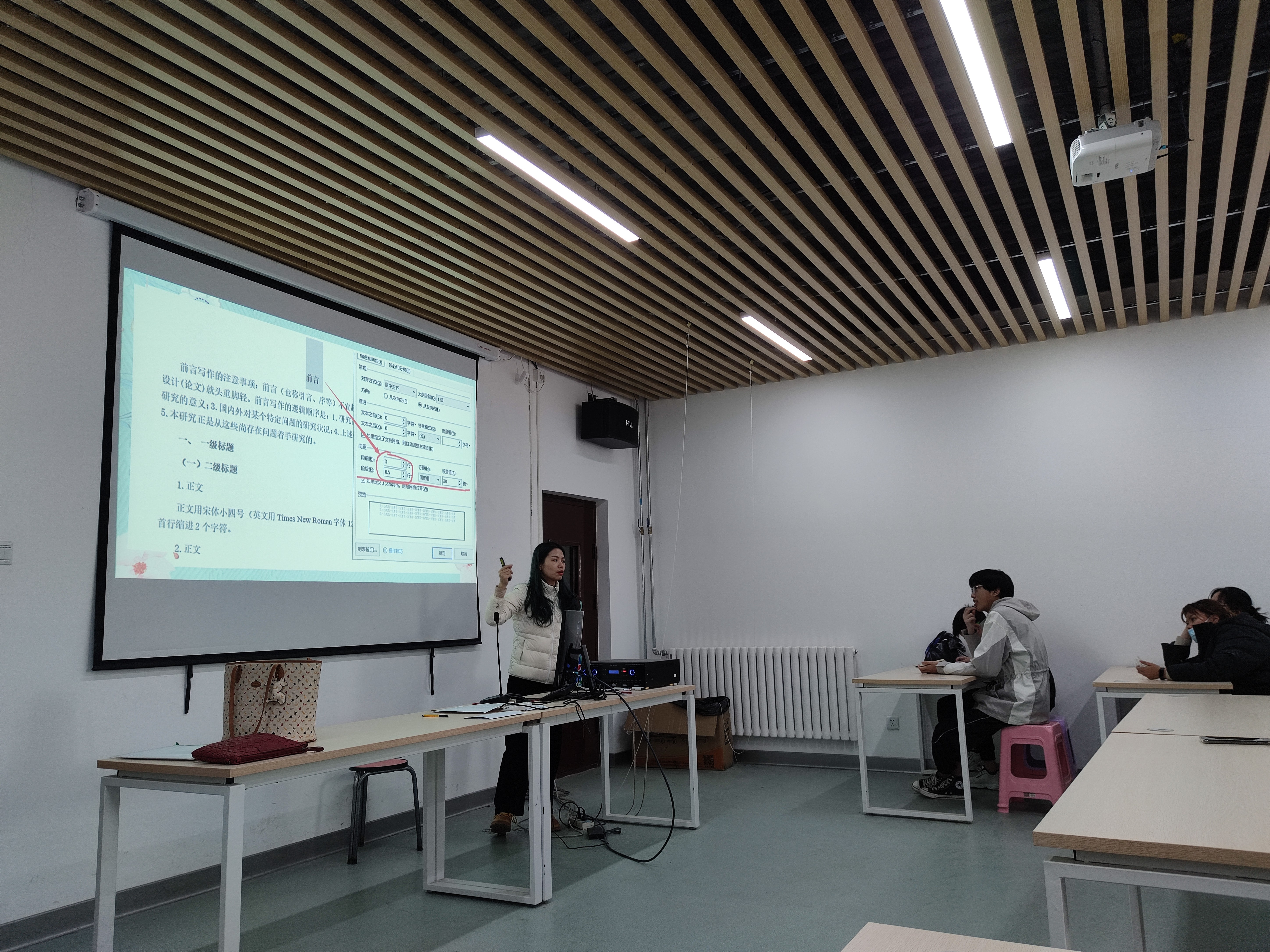 王斌副校长、熊秀峰院长分别为同学们分析了当前的就业形势,从不同角度给学生提出切实可行的意见和建议,并耐心地回答了同学们的提问。随后,覃传茵老师为同学们带去一堂毕业论文指导课,就毕业论文的撰写问题进行了详细的培训,为同学们顺利、规范完成毕业论文奠定了基础,指明了方向。