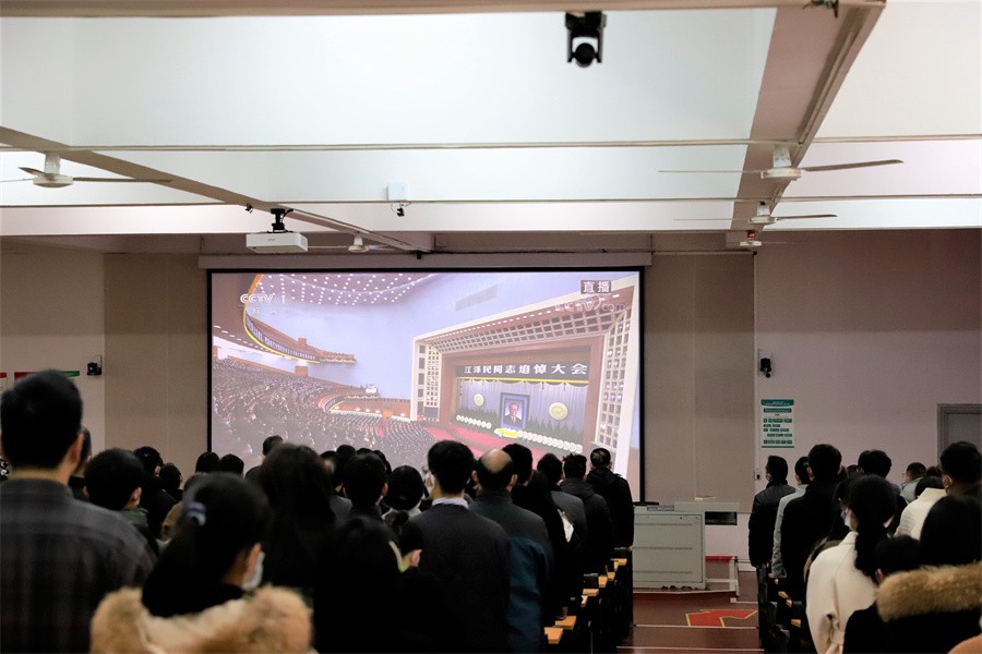 12月6日上午10时,党中央、全国人大常委会、国务院、全国政协、中央军委在北京人民大会堂隆重举行江泽民同志追悼大会。学校全体党政领导、中层干部,教职工党员、学生党员代表在西校区伦理楼107集体收听收看大会实况直播,沉痛悼念敬爱的江泽民同志。