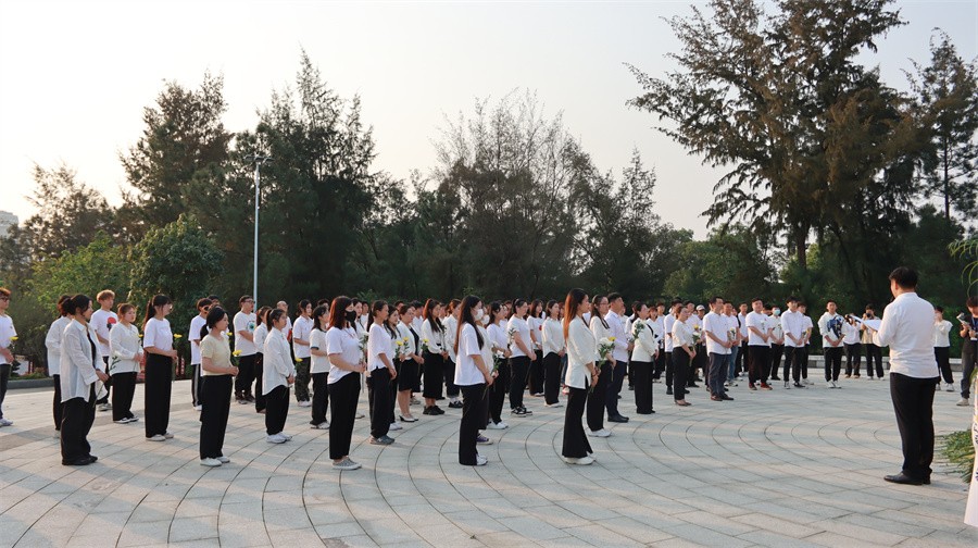 为深入学习贯彻党的二十大精神,缅怀革命先烈,弘扬爱国主义精神,传承光荣传统和红色基因,4月4日下午,我校组织党员、团员师生代表前往北海市长青公园,开展“不忘初心,强国有我 ”主题祭奠先烈活动,缅怀英烈祭忠魂,抚今追昔思奋进。学校党委书记张阳,党委副书记、副校长彭仁,党委副书记韦静月出席活动,党委委员、党团员师生代表100余人参加活动。