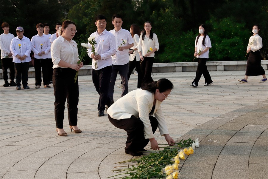 在庄严肃穆的烈士纪念碑前,全体代表人员通过致敬鞠躬、现场默哀、瞻仰烈士碑廊、敬献花篮和鲜花等方式表达对革命英烈的崇敬和追思。