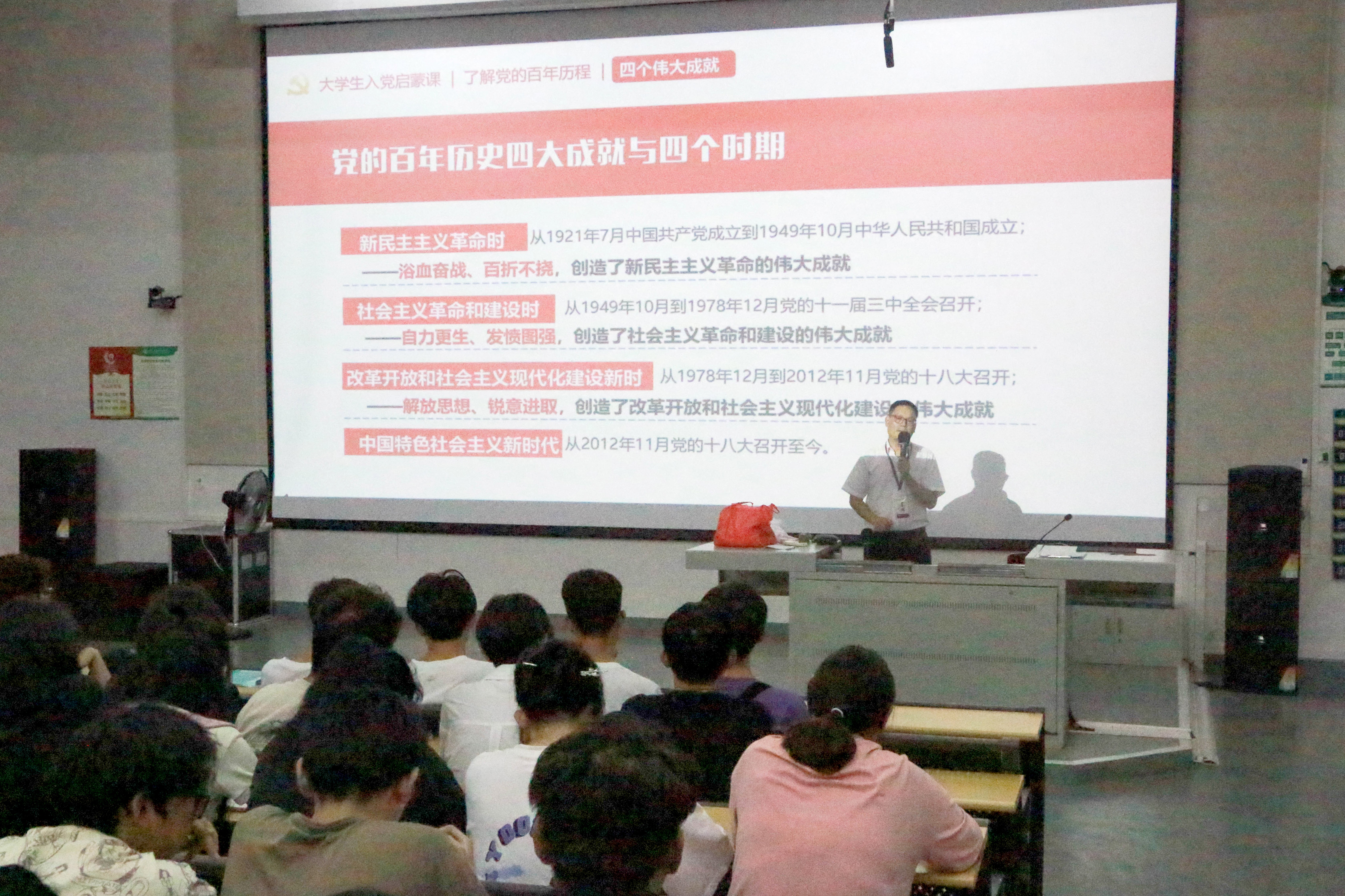 本次讲座内容分为六部分,从党的历程、精神,再到学习党的基本知识、于党同频,最后简述如何撰写入党申请、如何成为党的一员,进行入党启发教育。