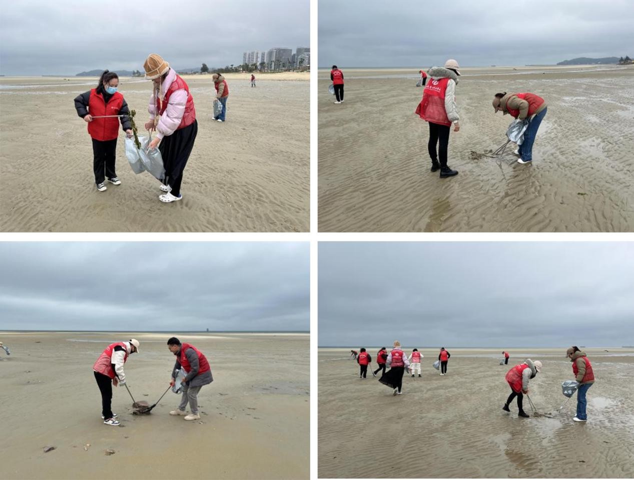 授课结束后,党员们迅速行动起来,身着统一的志愿者马甲,他们分组作业,相互协助,在北海三千海滩上捡拾碎玻璃、塑料瓶、废纸屑等各类废物。在阳光和海风的见证下,党员们不仅清除了海滩上的垃圾,而且为在场的游客展示了如何进行垃圾正确分类和投放,宣传了环保知识,引起了人们对海洋环境保护的广泛关注。活动尾声,支部还组织了一次重温入党誓词仪式,全体党员集体宣读誓词,表达了对党忠诚、服务人民、奉献社会的坚定决心,并再次提醒自己有责任带头实践和践行环保和可持续发展的理念。