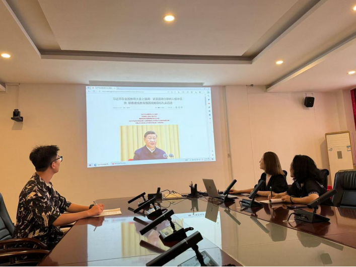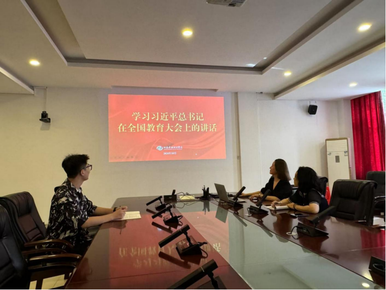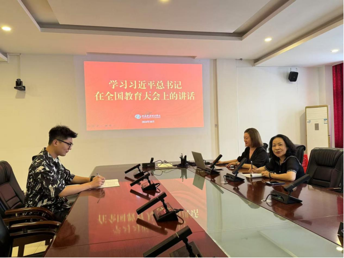 为深入学习贯彻习近平新时代中国特色社会主义思想,贯通习近平总书记在全国教育大会上的讲话和指示批示精神,2024年10月15日,发展规划处处长冯延组织本部门教职工在行政楼212会议室集中学习习近平总书记在全国教育大会上的讲话。