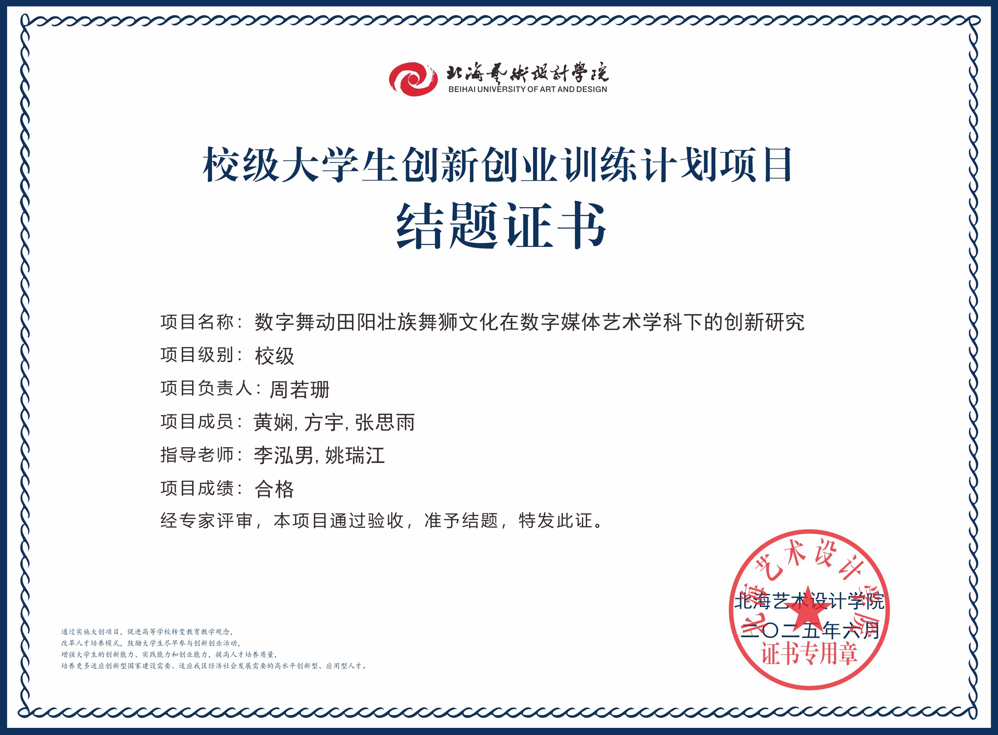 2025年大创项目结题证书(校级)