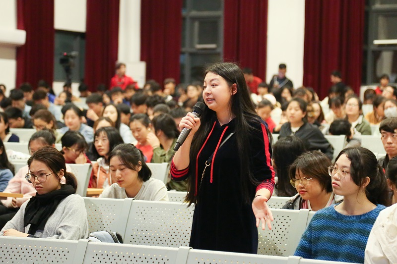 在互动过程中,陆教授提出了当代大学生都比较关注的两个问题:我们应该怎样去拥有人生的幸福前途,和如何看待刚毕业的就业学生。对于这两个问题,陆教授进行了透彻的分析讲解,同学们都颇有收获。