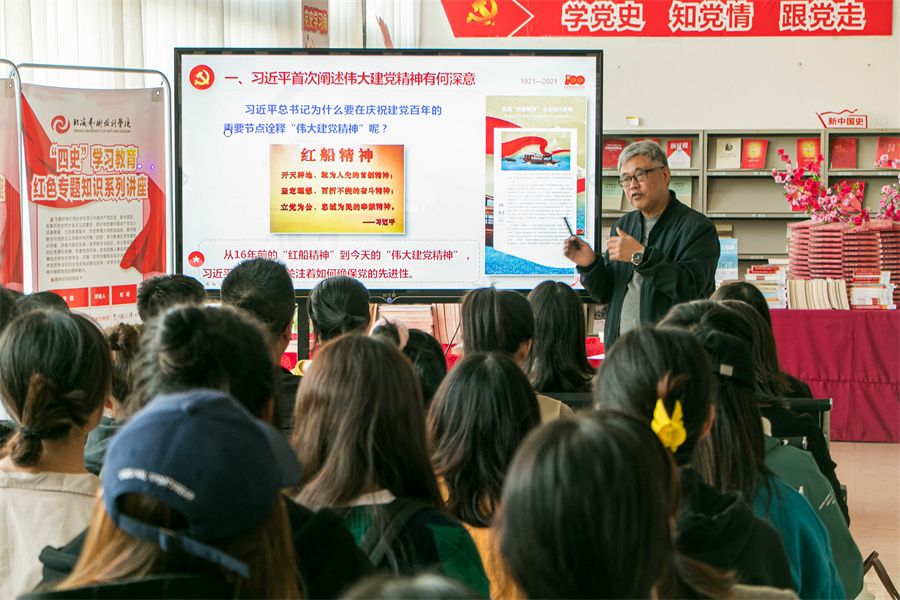讲座层层递进、分析透彻、发人深省,让全体参加讲座的师生对中国共产党精神有了更深刻的认识,更勉励我们要从伟大建党精神中汲取养分和力量,以“咬定青山不放松”的韧劲,坚定理想信念,成为实现中华民族伟大复兴的先锋力量,向第二个百年奋斗目标迈进。