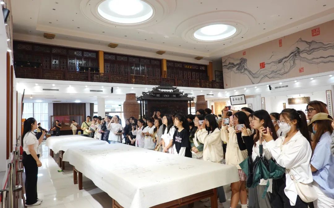 紧接着在工作人员的带领下,师生们来到了崇德堂文创馆。崇德堂文创理念定位于“美德共济”,即希望从中国文字出发,通过现代创意设计,将吉祥美善的国风审美与春风化雨的道德文化相融合,让中国制造的文化良品表达更多人的美好心声。