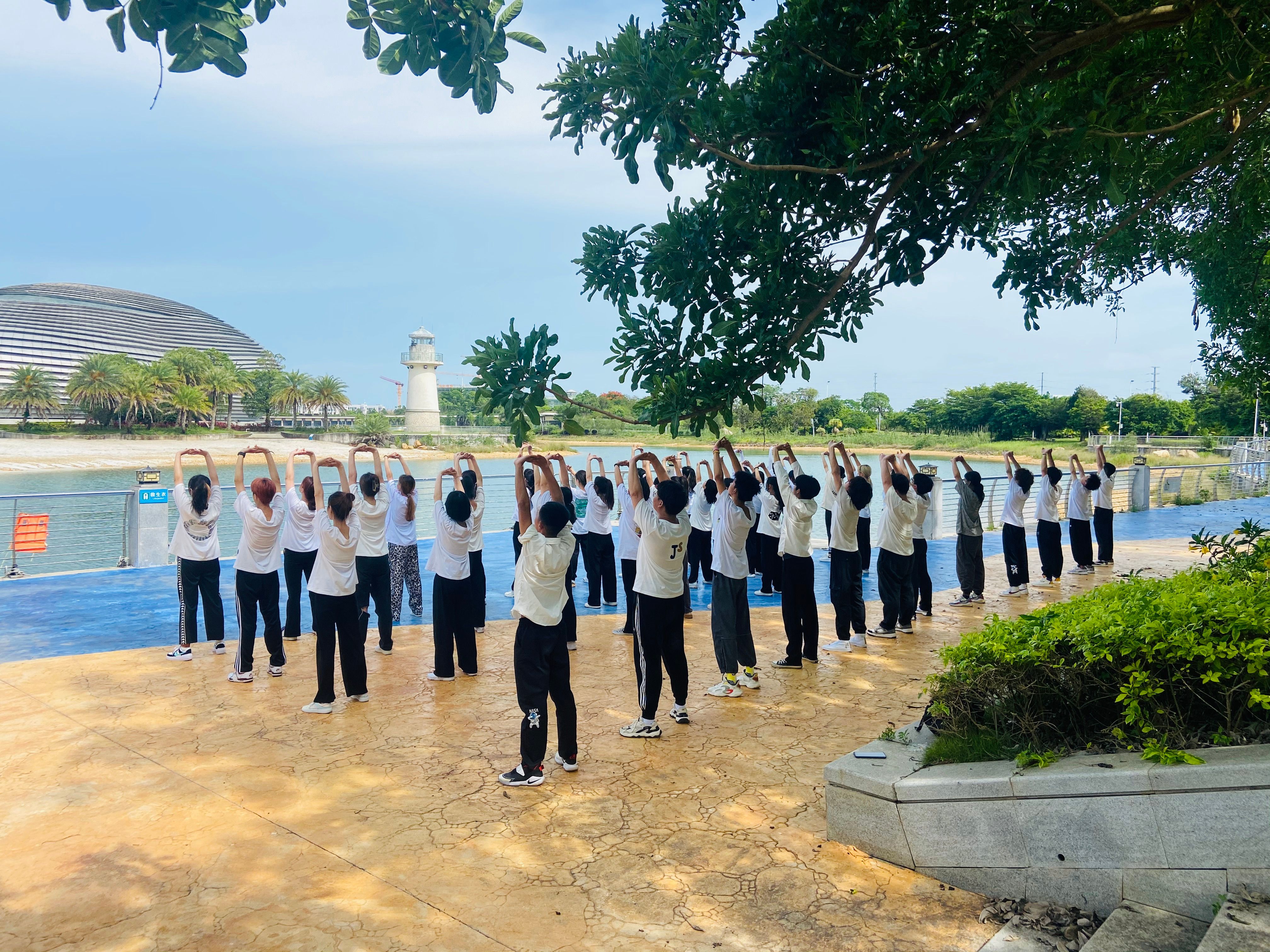 我校把八段锦项目作为体育课程特色内容进行普及,加强学生体质、增强文化自信的同时,弘扬、传承我国优秀的传统体育文化。