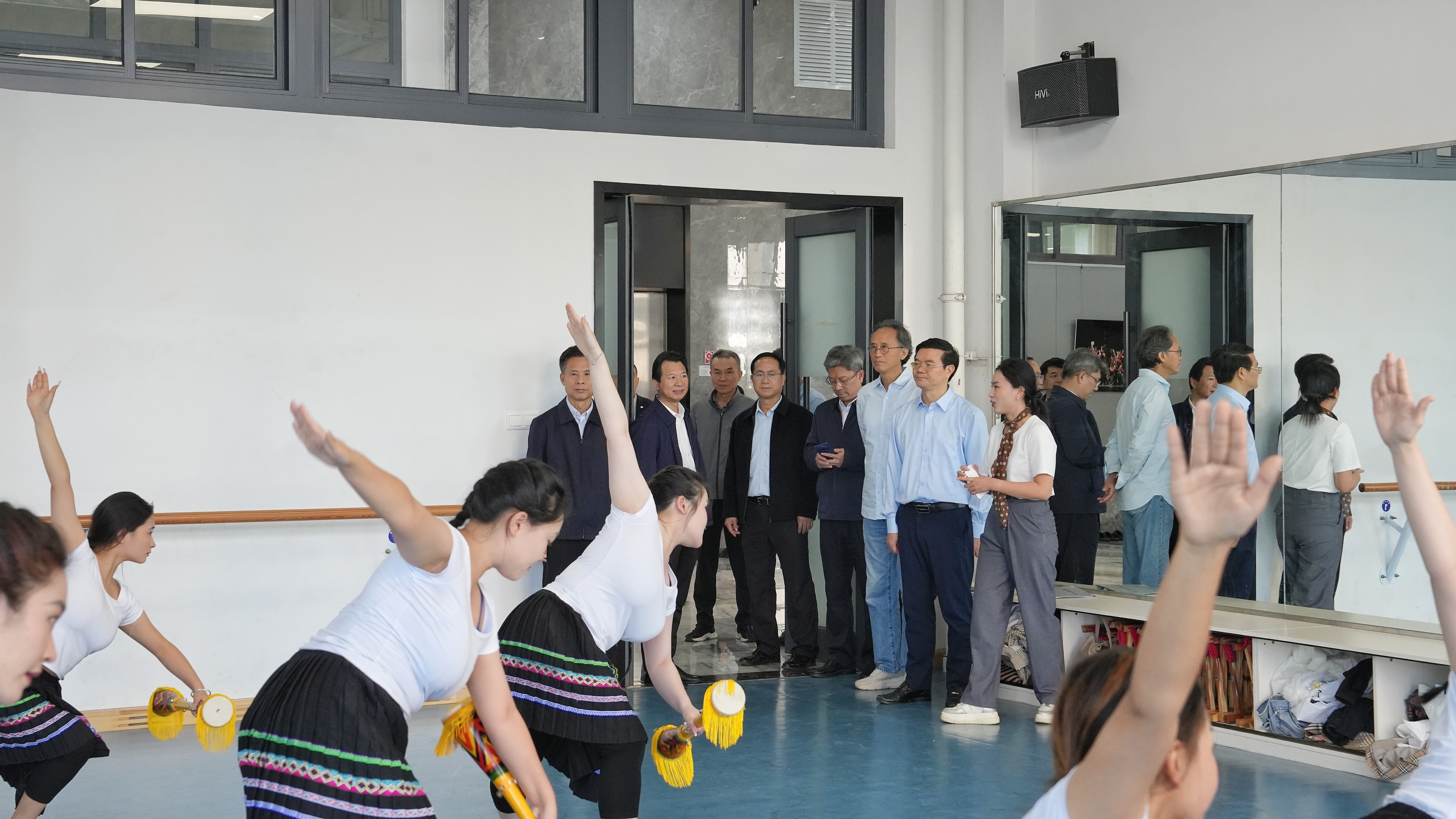 会前,满昌学部长一行还参观了我校舞蹈教学课堂及师生设计作品展览等。(周小琪/摄)
