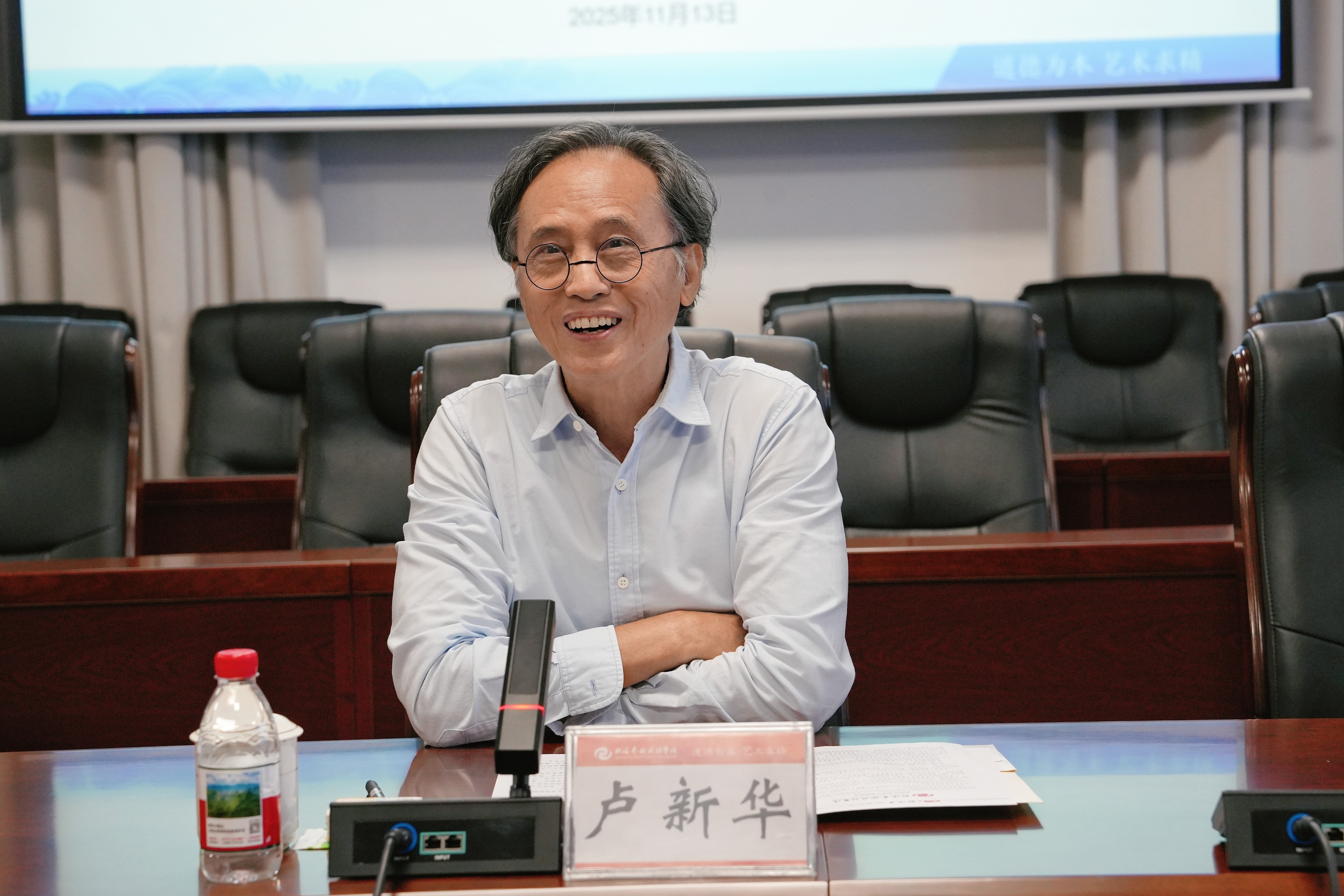 调研会上,我校校长卢新华介绍了学校的基本情况。学校近年来致力于服务国家文化产业发展战略,在影视动画与数字媒体艺术领域取得了显著的教学与创作成果。学校已开设七个与影视创作相关的专业,建有AR实验室、录音实验室等80多间配套实验室。师生创作的《海上丝路南珠宝宝》动画片,在2017年“一带一路”国际合作高峰论坛在北京召开时,在央视少儿频道黄金时段播出,获得广西第十四届精神文明建设“五个一工程”优秀作品奖。原创网络动画片《勇敢的阿牛哥》入藏国家图书馆。动画专业学生动画短片作品《守神》《白马》连续两年获得广西网络动漫大赛金奖。舞蹈影像作品《渡》,在2024年匹兹堡国际舞蹈电影节上,获官方选择奖。