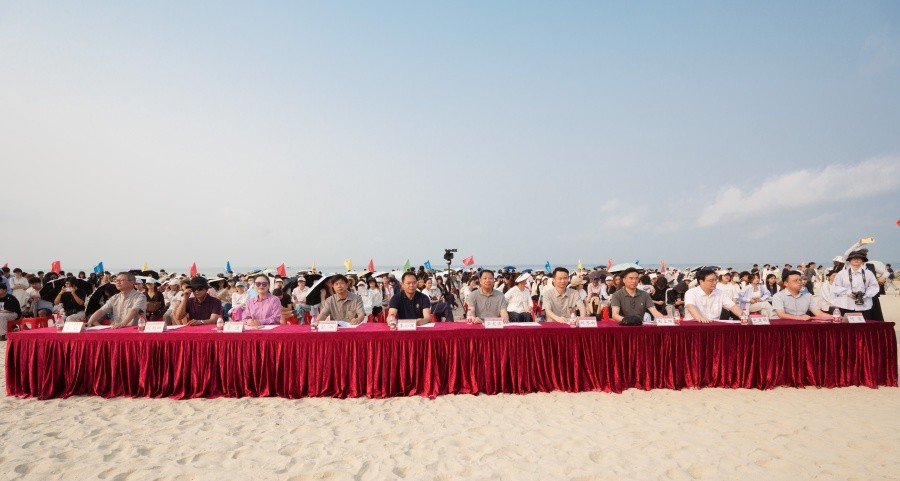 4月10日,北海银滩沙雕比赛暨北海艺术设计学院第二十三届沙滩运动会在银滩秀映潮雕区东侧鱼群广场顺利举行。开幕式现场,彩旗迎风招展,人声鼎沸。北海旅游集团副总经理李小军,北海银滩景区管理有限公司副总经理雷洁,学校党委书记覃宪儒,党委副书记彭仁、刘承初,副校长陶立阳、刘朝雄、包建明,总督学王斌,各部门、各单位负责人及学校师生齐聚银滩参加开幕式。开幕式由副校长何煜主持。