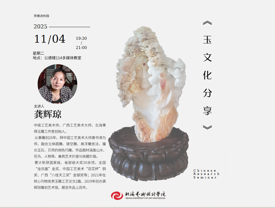 讲座预告丨龚辉琼《劳模进校园——玉文化分享》