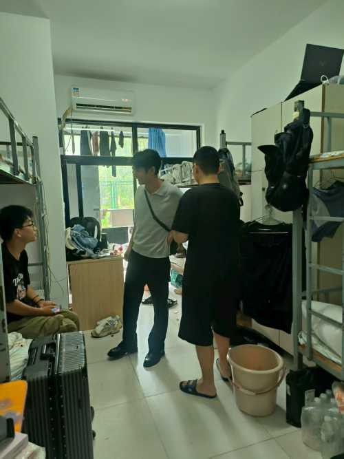 2025年8月20日下午,在北海艺术设计学院北京实践基地(宏福)的学生宿舍里,书法学院常务副院长苏乃从、党支部书记喻广林深入学生宿舍,与同学们亲切交谈,细致询问大家的学业进展、生活需求及未来规划,了解他们的学习、生活、思想状况以及实际困难,认真听取同学们对学院工作的意见和建议。