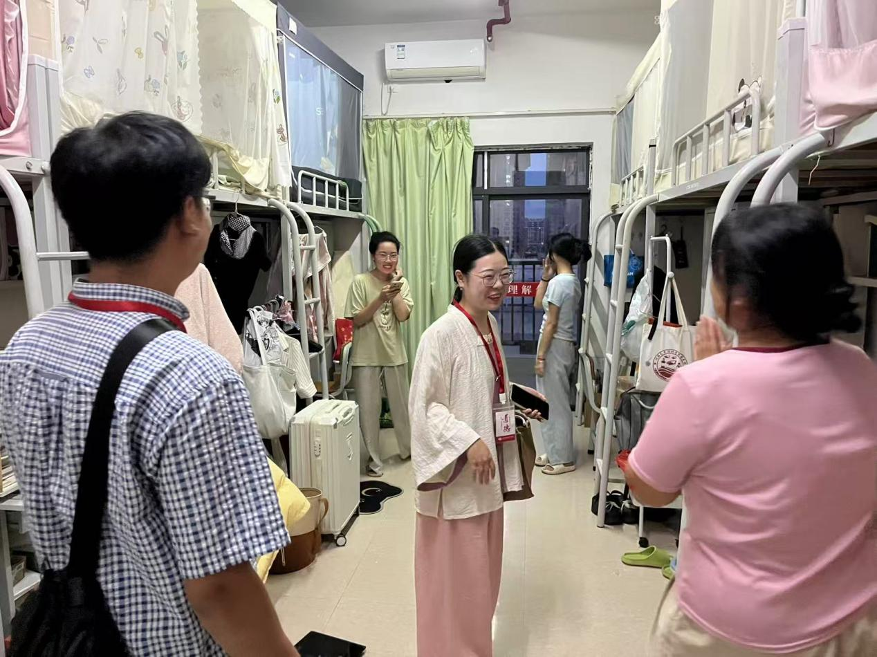 走访期间学院领导学生亲切交谈,详细询问学生关于住宿适应、日常作息、专业学习等情况暖心拉近师生距离。学院领导仔细查看宿舍居住环境,叮嘱学生增强安全意识,保持宿舍环境干净整洁,养成良好的生活习惯。同时,强调寝室不仅是休憩的港湾,更是切磋琢磨的第二课堂。鼓励同学们将书法融入日常,在互帮互学中共同进步,营造翰墨飘香的寝室文化。