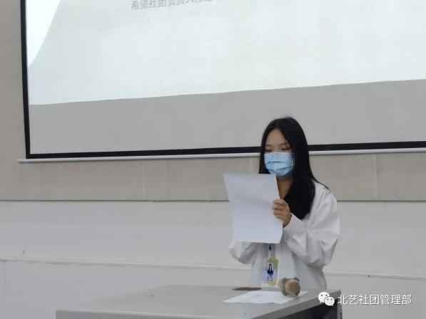 主席团代表魏天意讲了社团的日常工作,社团开课考勤和社团卫生检查的要求。