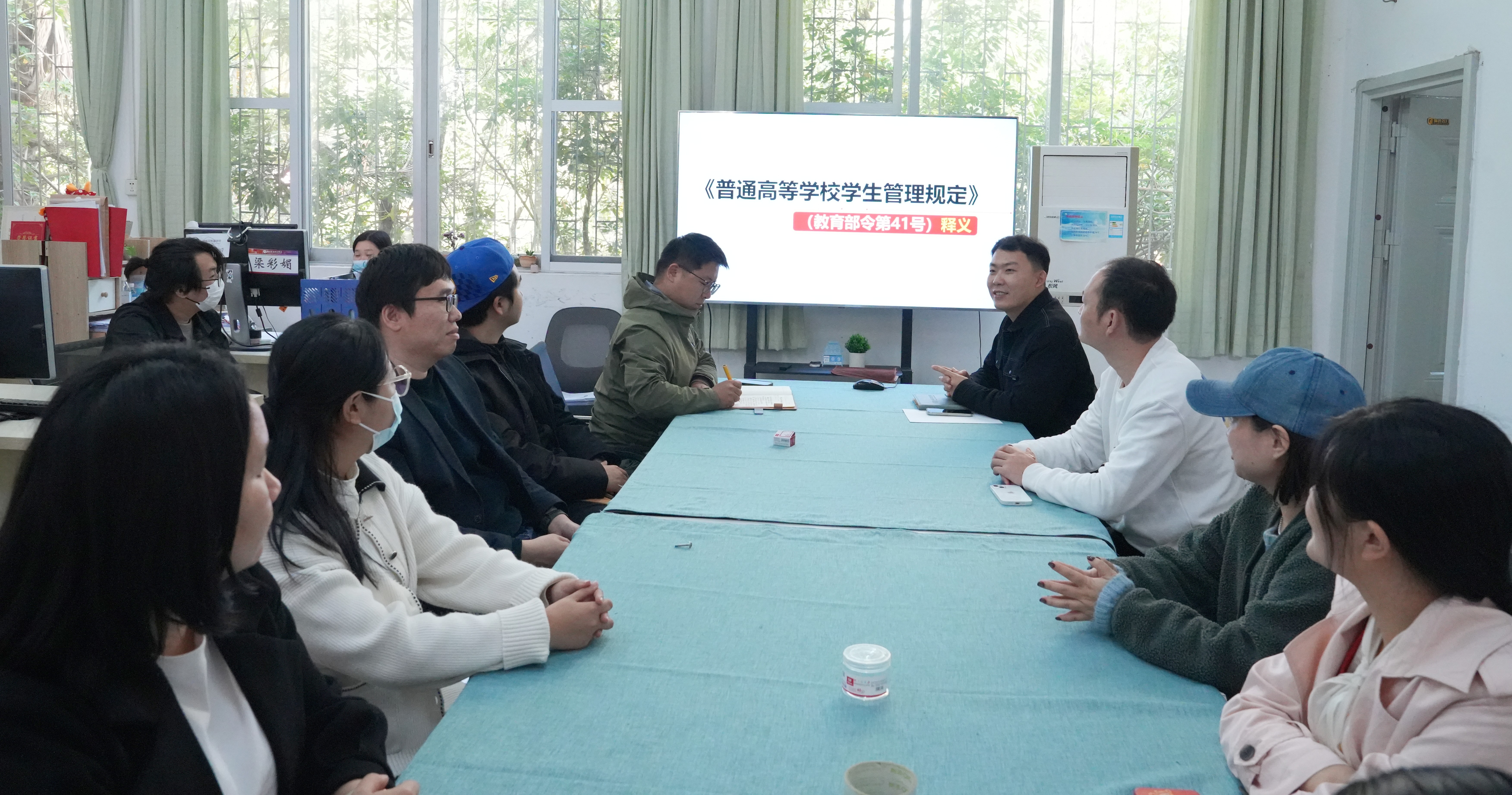 学院学工办精心准备释义与解读资料,助力辅导员深度领会文件精髓,确保在日常管理中精准施策、有章可循。各年级辅导员采用专题会议形式分多个时间段精心组织学习,确保无一人遗漏,有效提升了辅导员对规定的知晓率与参与度。在学习过程中,辅导员们认真聆听、热烈讨论,就如何将规定更好地融入日常管理工作各抒己见,形成了良好的学习氛围。