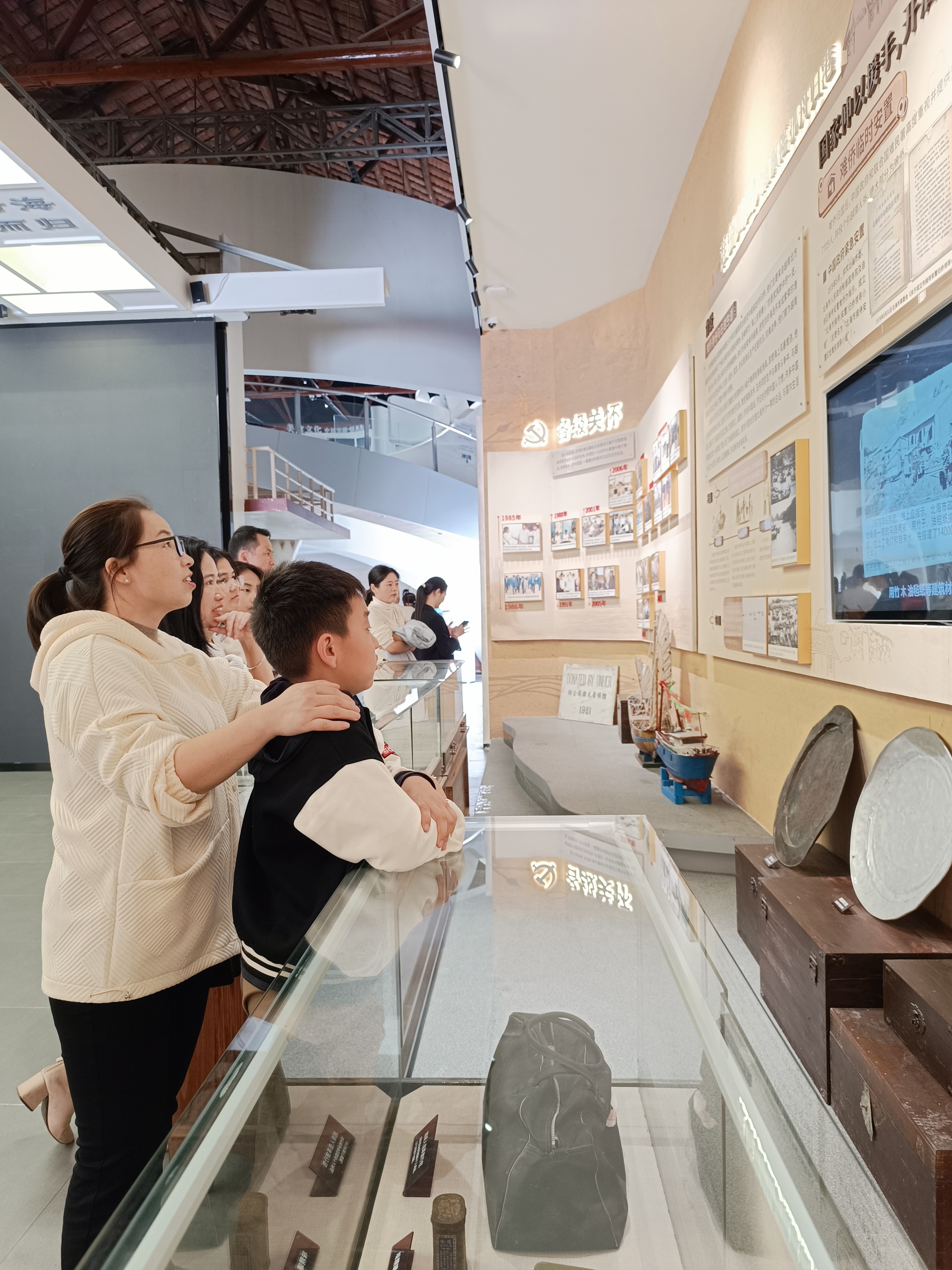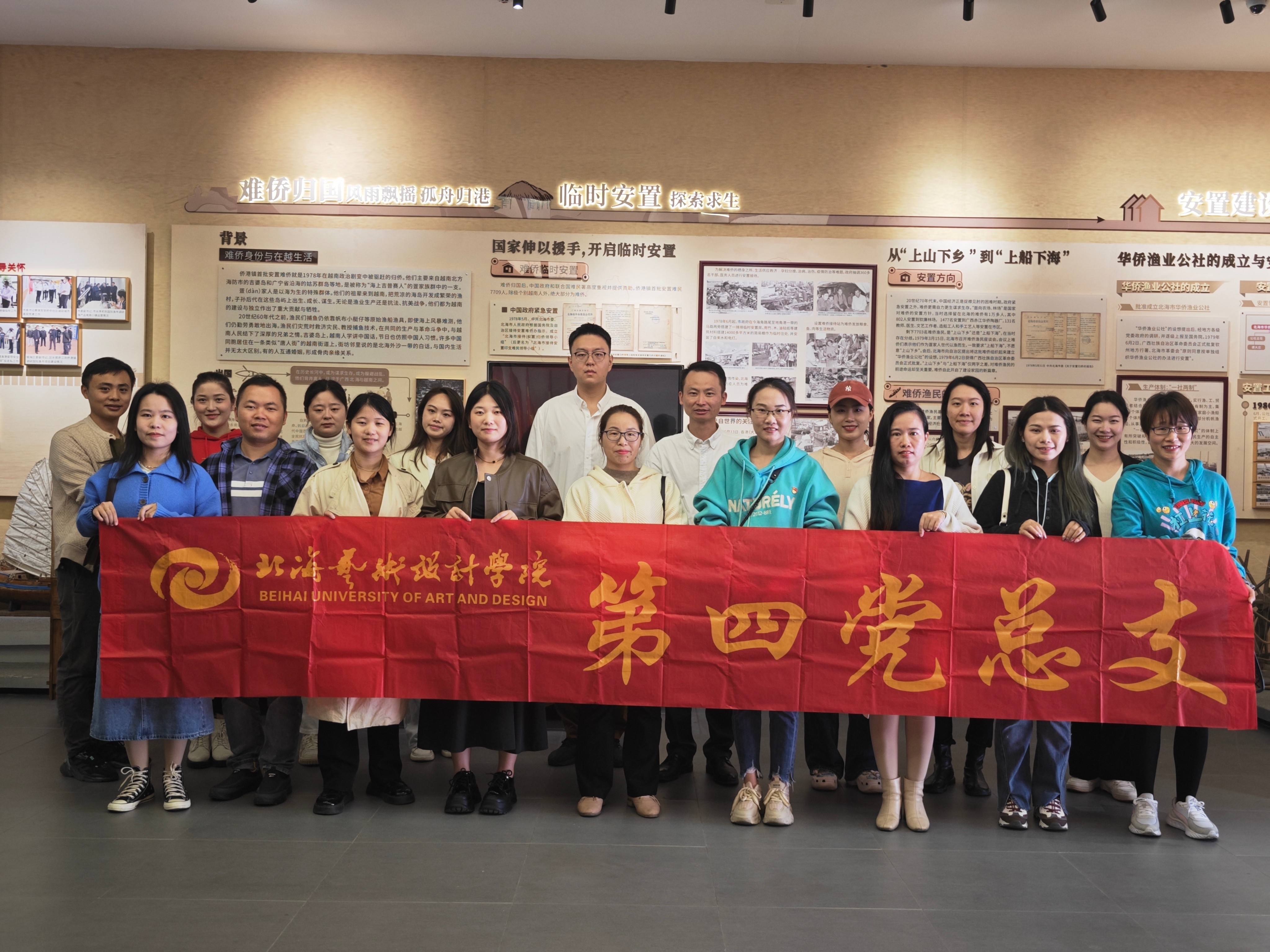 下午14时,全体教师党员来到侨港华侨历史展览馆参观学习。侨港华侨历史展览馆是利用现有的北海市华侨渔船修造厂内的旧加工车间及周边用房进行改造,展览馆占地面积约400平方米,一、二层建筑面积约600平方米,并配套商业建筑。展览馆以时间为轴线,通过图片、文物等展品从难侨归国、临时安置、基础设施建设、经济建设、三产融合发展等5个阶段进行布展,并开辟置家文化、归侨文化、美食文化、家国文化等展区,是充分展现侨港40多年来从无到有、从小到大、从弱到强、经济社会蓬勃发展、社会安定团结的建设发展过程的历史文化展馆。一件件文物、一张张图片都让党员教师们感受到了国家取得的历史性成就和海外华侨的家国情怀,也让大家感受到国家的富强是海外华侨最坚强的后盾。