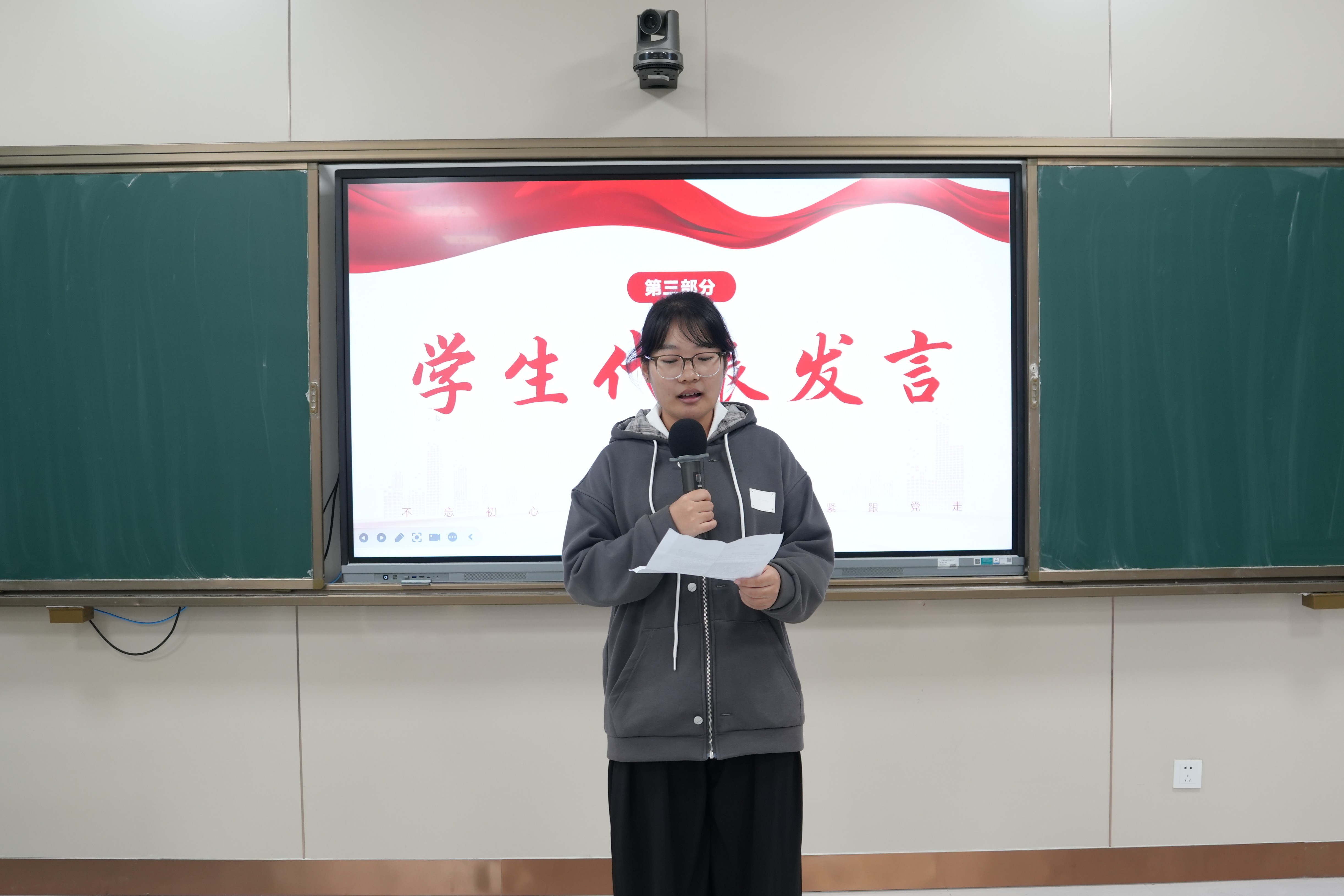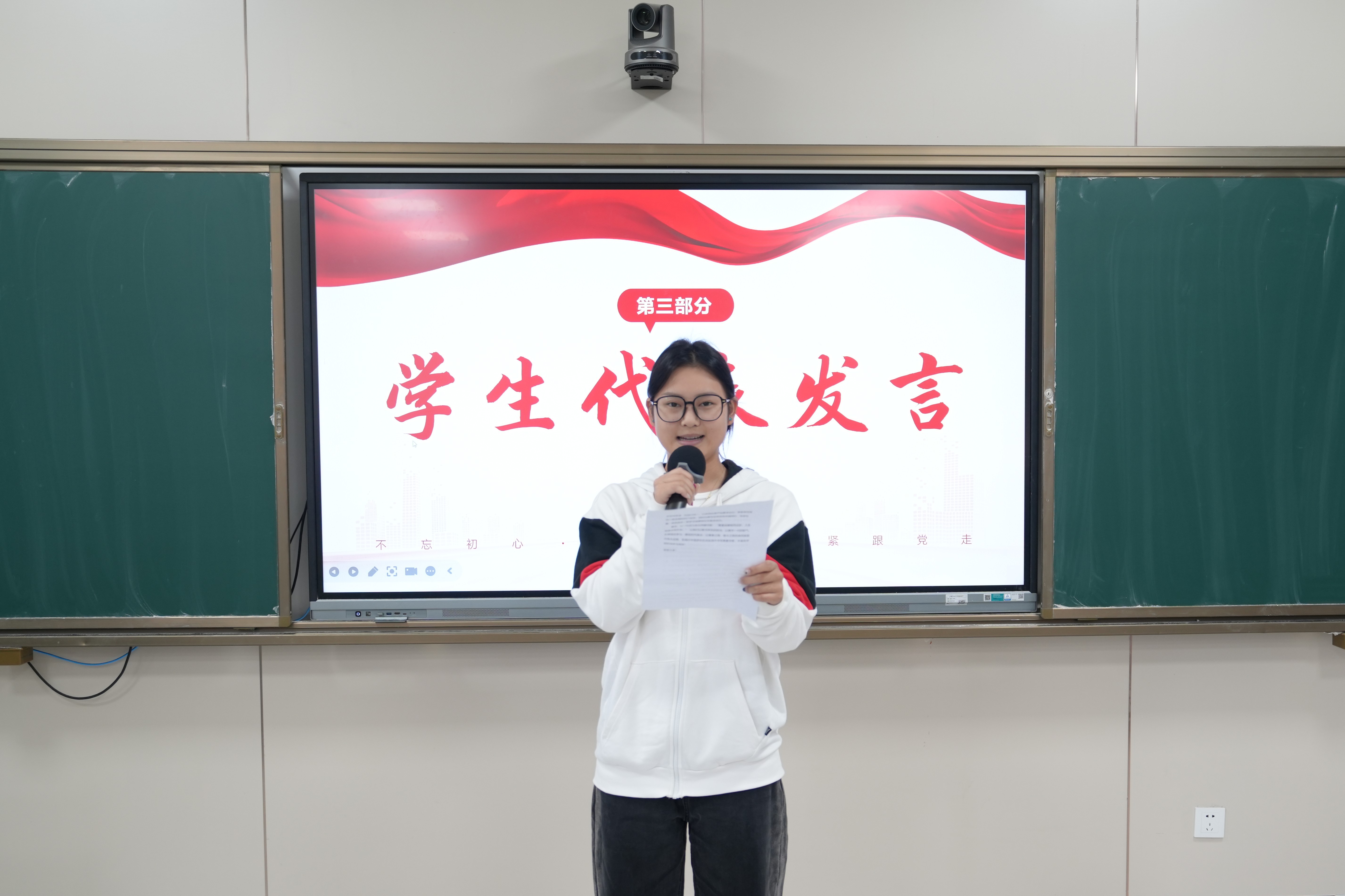 紧接着,哲学学院杜姿懿同学与教育学院乔鑫同学作为学员代表发言,分享青马初心与学习展望。