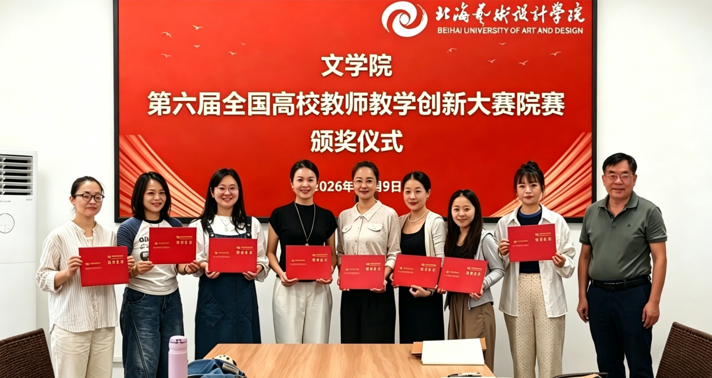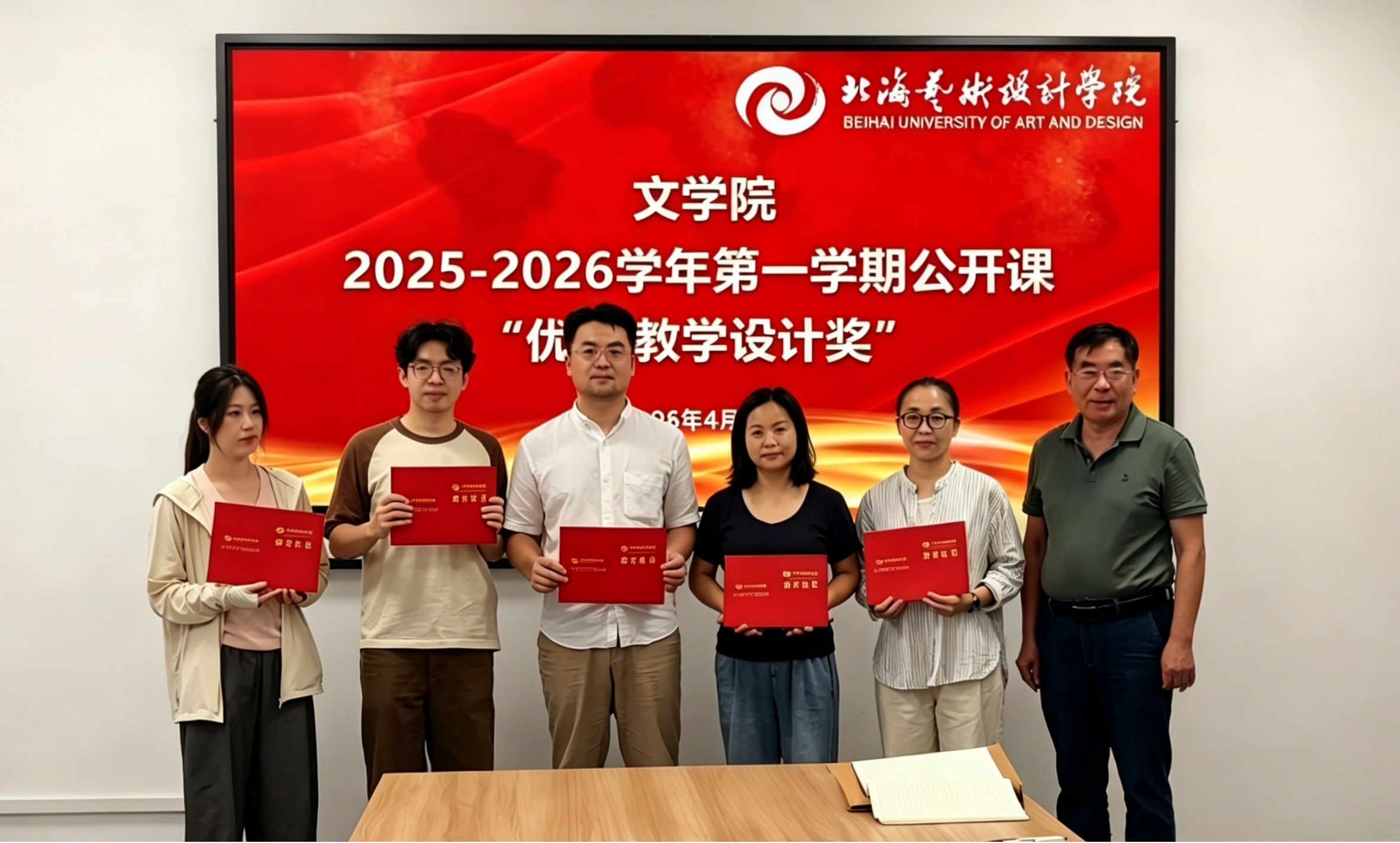 为表彰上一学期教学竞赛活动中表现突出的优秀教师,充分发挥榜样示范引领作用,进一步激发全体教师投身教学改革的积极性,2026年4月9日上午,文学院在南校区体育馆105会议室举行颁奖仪式,对第六届全国高校教师教学创新大赛院赛及2025-2026学年第一学期公开课推优活动获奖教师进行表彰。