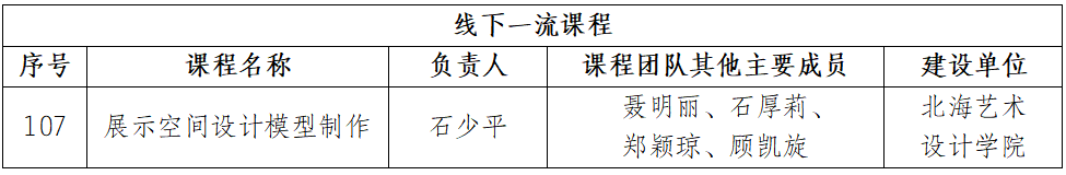 2025年11月6日,广西壮族自治区教育厅公布第四批自治区级一流本科课程名单,由我院石少平老师担任负责人、聂明丽、石厚莉、郑颖琼、顾凯旋老师为主要成员的“展示空间设计模型制作”课程,成功入选线下一流本科课程,这是我院在本科课程建设领域取得的又一重要成果!