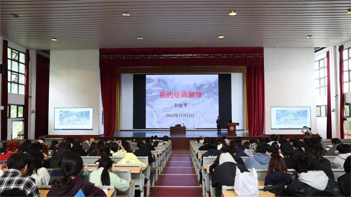 11月13日,广西艺术学院韦俊平教授应邀于我校西校区大礼堂,为广大师生开展了一场专题为《我的绘画情缘》的精彩讲座。