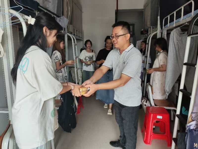 为贯彻落实社会主义核心价值观,继承和发扬中国传统文化,提高学生们对传统文化的认同感。9月17日,学院执行院长龚为、副院长金凯婧、殷声副院长、党总支副书记鲁明阳、学工办主任林昌华、副主任杨凯、分团委副书记许荣军及12位新生班级辅导员,深入学生宿舍,为每一位新同学送上了来自北海艺术设计学院的真挚祝福与特制的中秋月饼。这一举动不仅传递了节日的喜悦,更展现了学院对学生们无微不至的关怀与爱护。