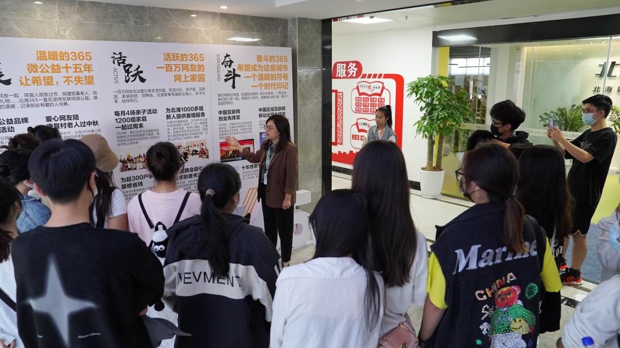 师生听北海365负责人讲解企业发展历史与文化,了解企业业务