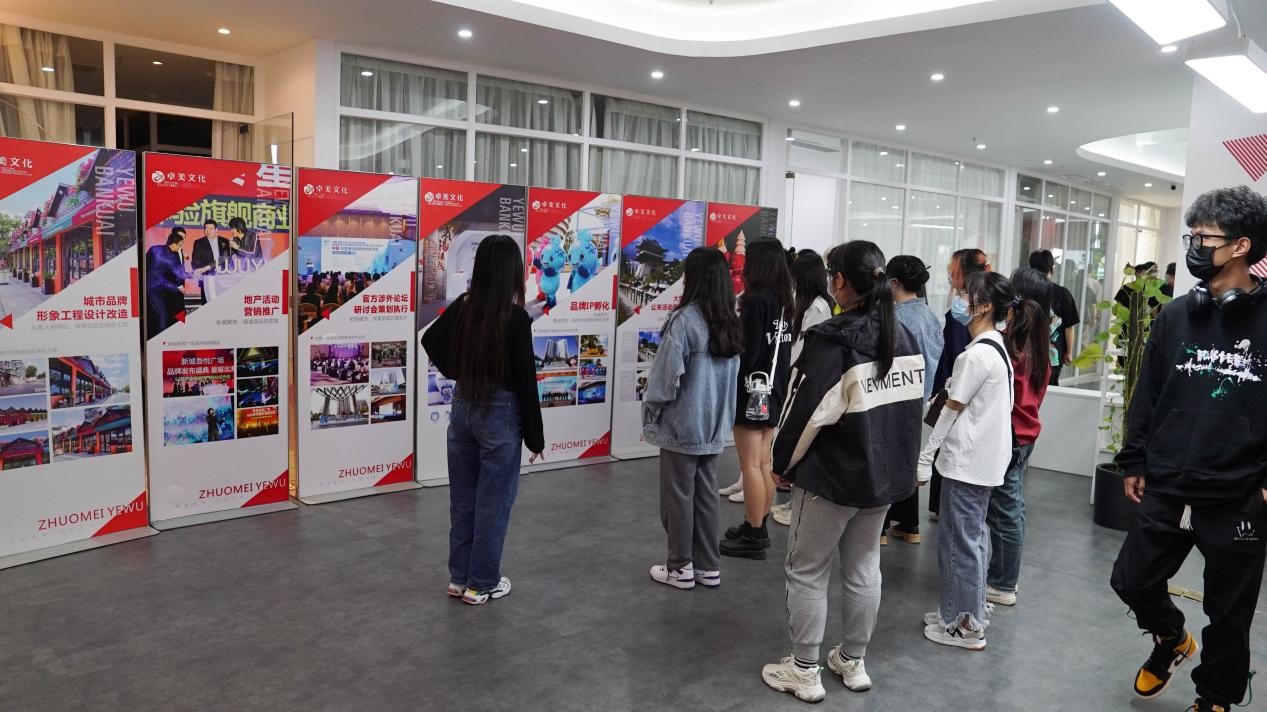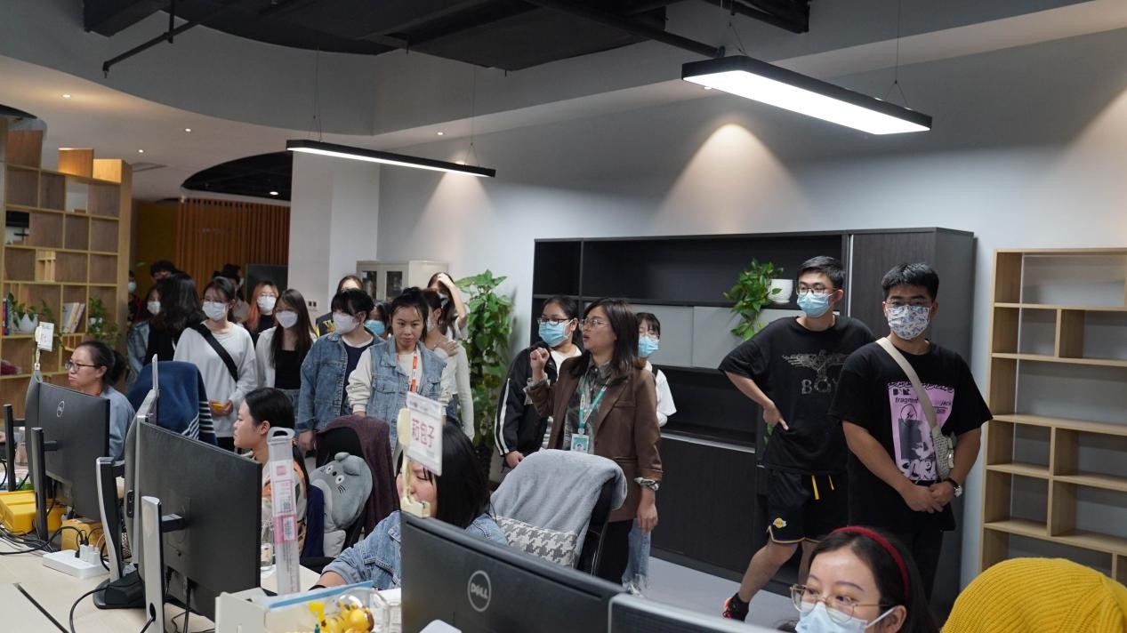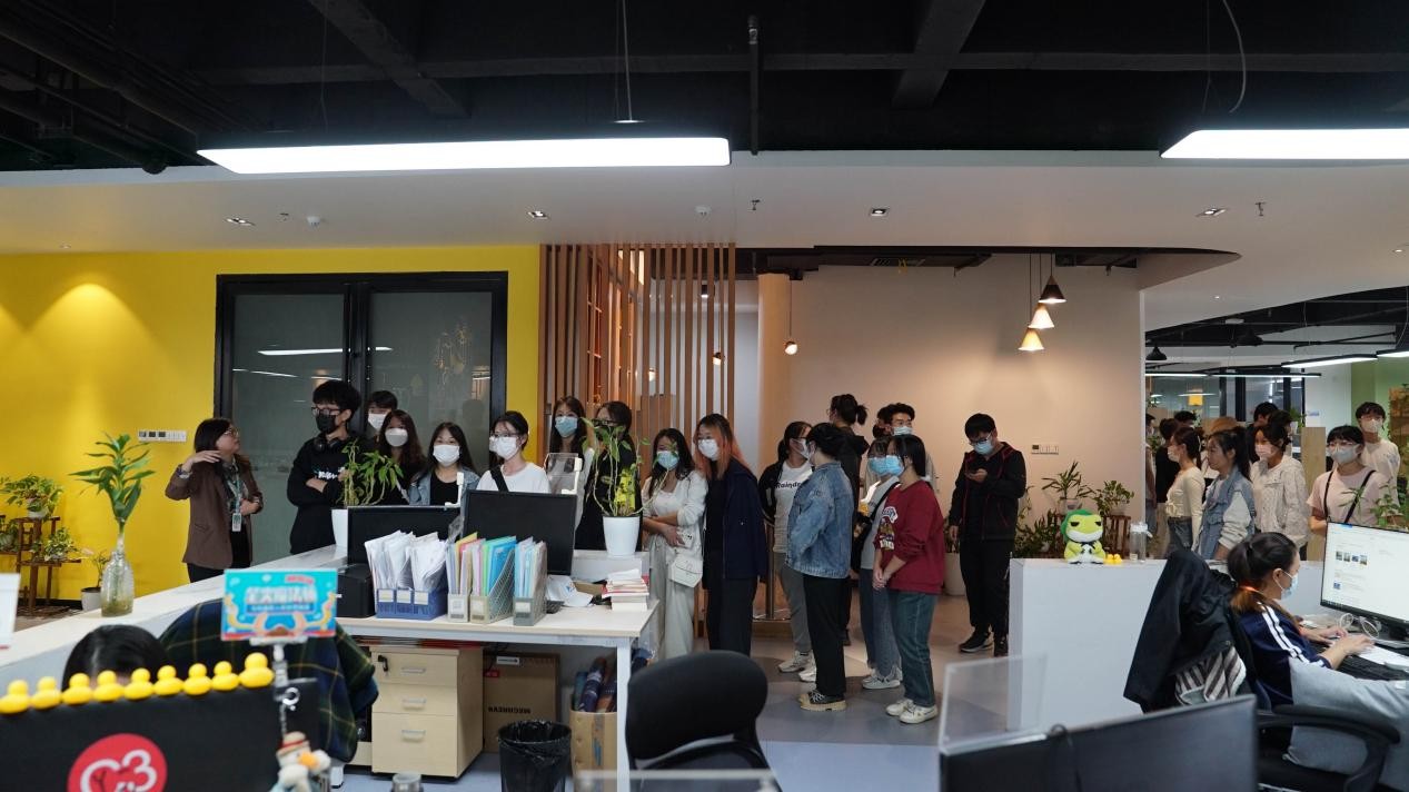 师生在卓美文化公司负责人的带领下参观企业工作环境,了解公司业务
