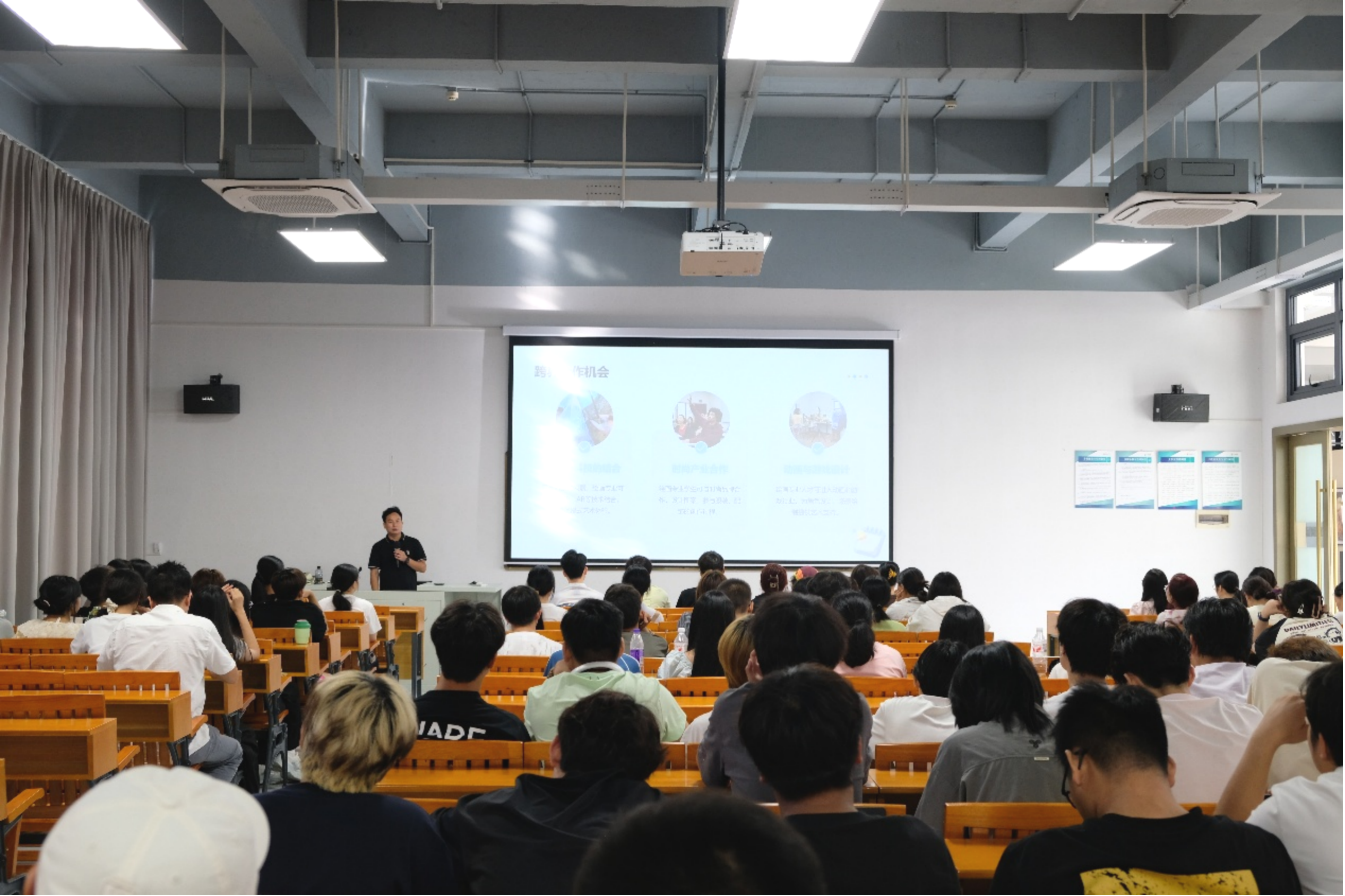在互动环节中,学生围绕课程设置、难度及跨专业选修等问题踊跃提问,刘勇生主任逐一予以解答。