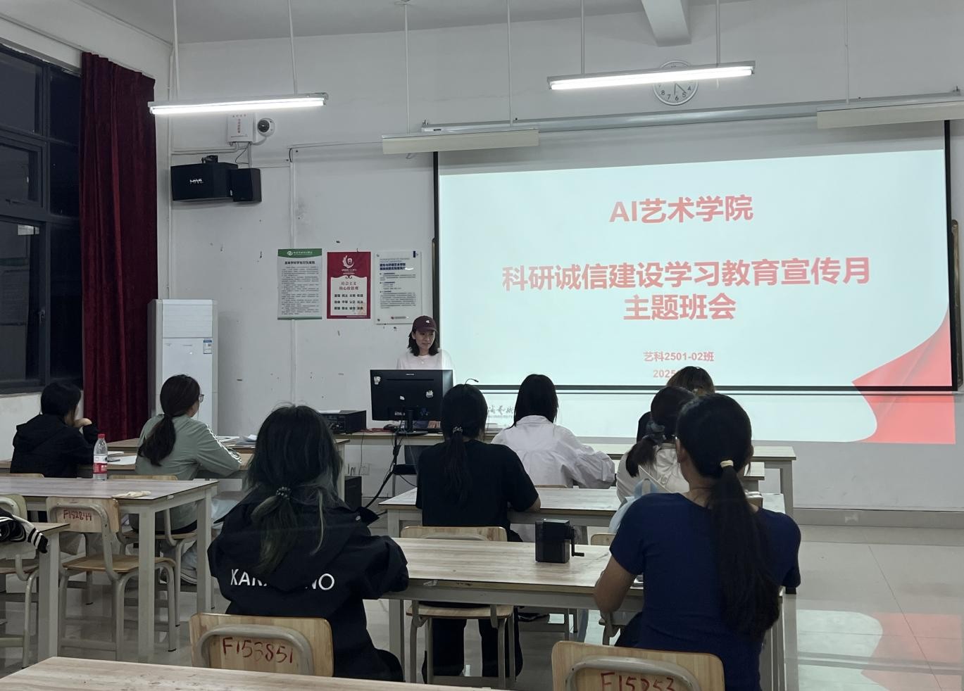 各班班会形式新颖,内容贴近学生实际。有的班级通过播放科研诚信主题的警示教育片,以直观的画面和真实的案例震撼学生心灵;有的班级则组织了专题讨论会,同学们围绕“AI生成作品的署名权归属”、“如何正确引用AI辅助创作的内容”等与本专业紧密相关的话题各抒己见,在思想碰撞中深化了对学术规范的理解。这一系列班级活动,将抽象的诚信原则转化为具象的行为指南,使科研诚信的意识内化于心、外化于行,在广大学生中播下了严谨治学的种子。