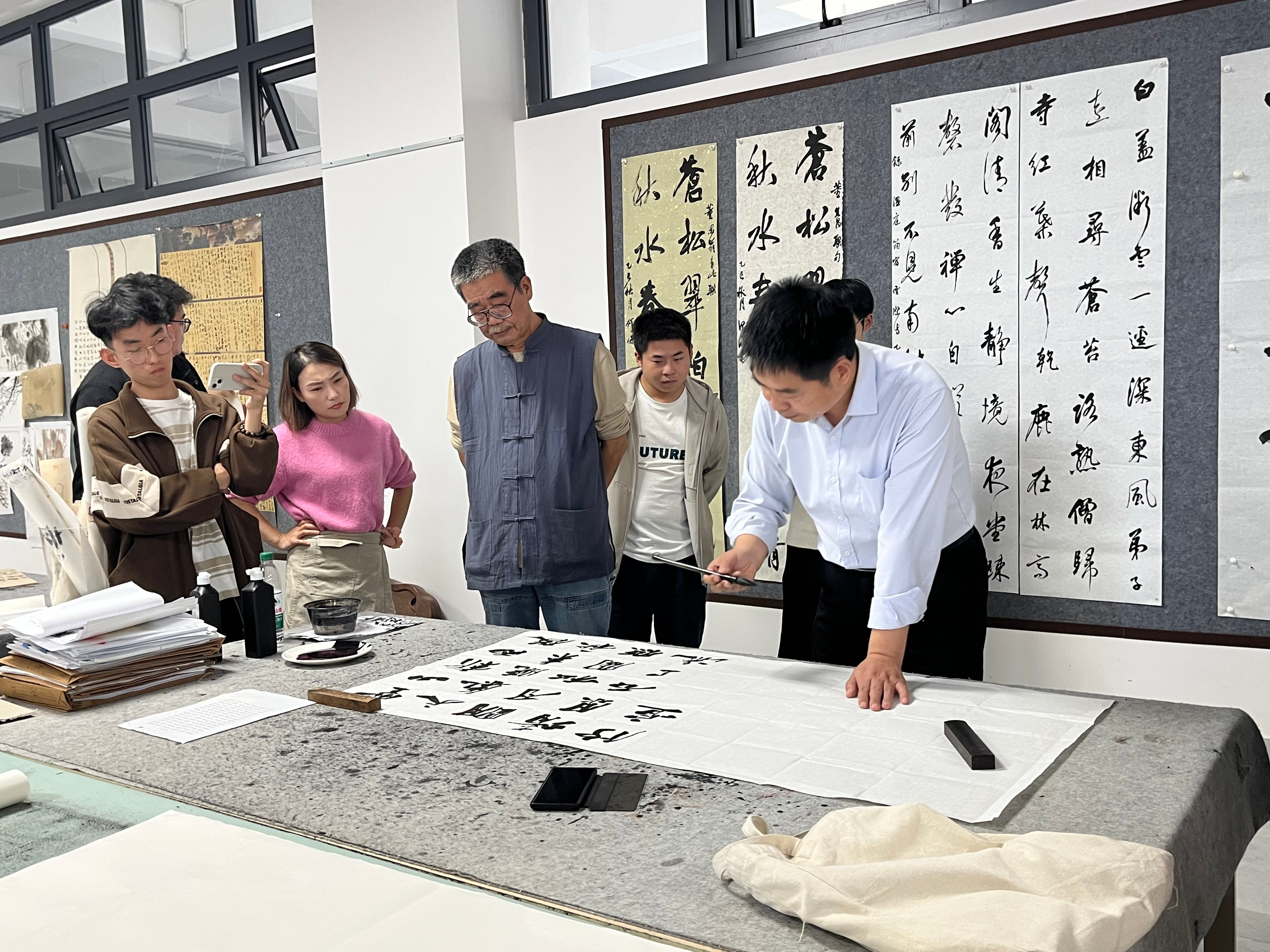 本次活动融理论探讨与现场示范于一体,深化了师生对书法学习与创作的理解,进一步推动了传统文化在校园的传承。书法学院将持续搭建高水准艺术交流平台,不断深化教学内涵,为书法教育创新发展注入持久活力。(李鑫、欧阳稳/摄)