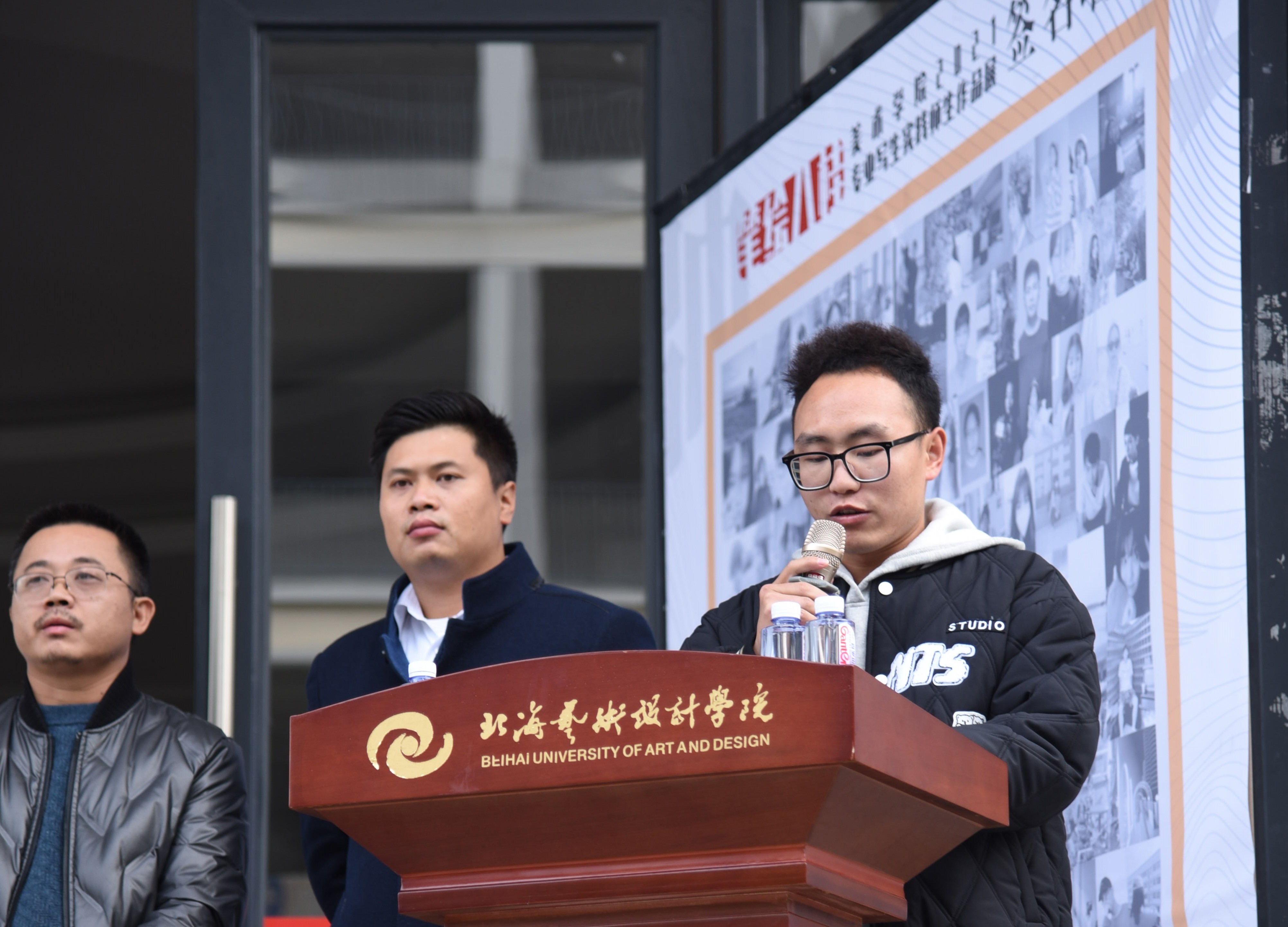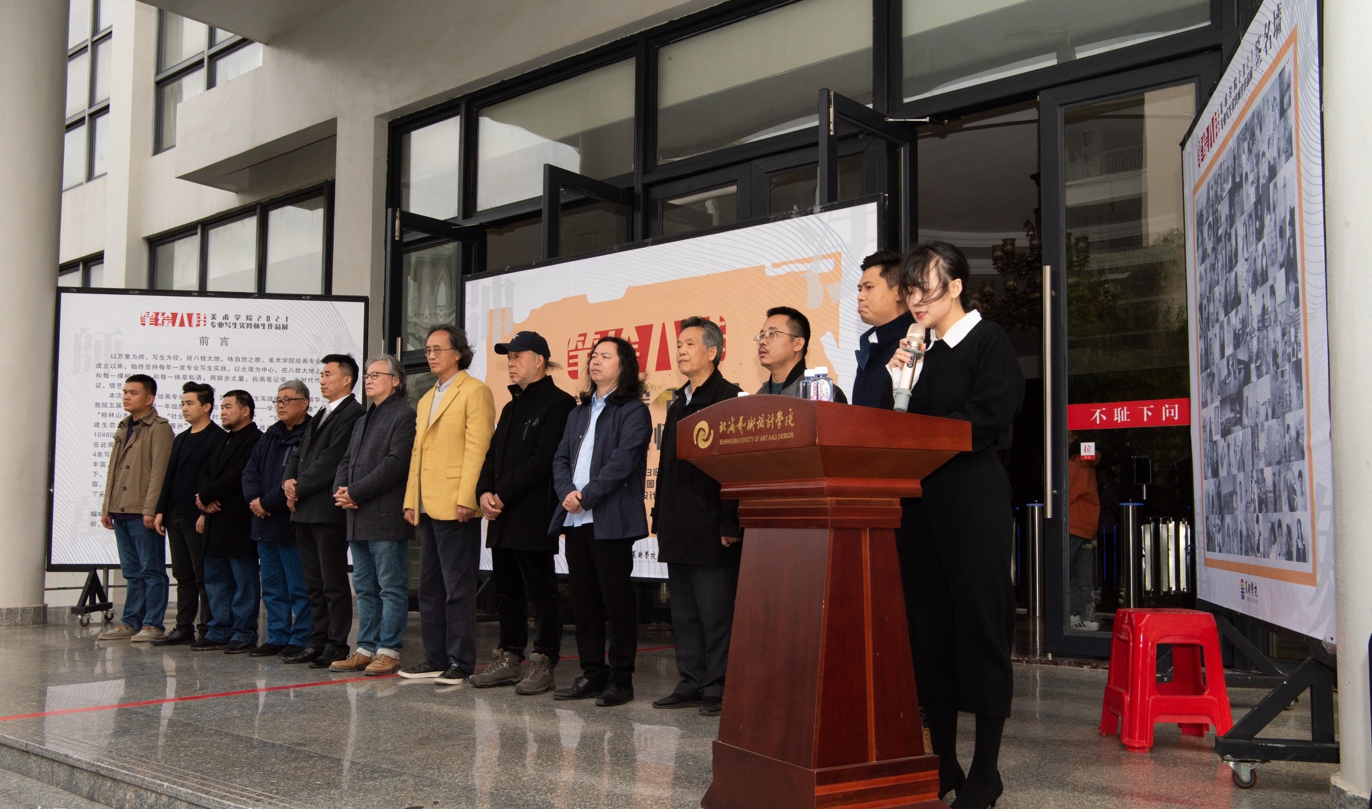 2021年12月31日下午4:30,美术学院于西校区图书馆一楼展厅举行美术学院“笔绘八桂”——美术学院绘画专业写生实践师生作品展。本次展览出席的嘉宾有北海艺术设计学院校长卢新华,北海艺术设计学院副校长胡胜,北海艺术设计学院副校长陶立阳,北海市美术家协会主席、北海艺术设计学院特聘教授肖畅恒,北海市画院院长、北海艺术设计学院特聘教授蔡群徽,北海艺术设计学院美术学院潘毅群教授、巫维轩教授,北海艺术设计学院动画学院党总支书记孙永辉,北海艺术设计学院美术学院党总支书记韩玮,北海艺术设计学院美术学院副院长龚为,北海艺术设计学院美术学院绘画教研室主任张湘中,北海艺术设计学院美术学院综合办主任、专业写生系列课程负责人肖玺,以及美术学院绘画专业部分师生。美术学院郭珂老师主持本次汇报展,肖玺老师以及优秀学生代表徐进以及卢新华校长先后分别进行了发言。