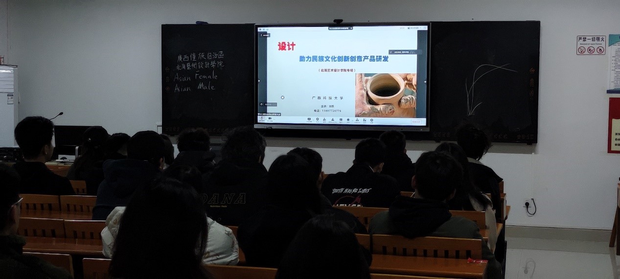 2021年12月31周五上午9:00 ,刘 凯面向摄影专业2020级学生授课《设计——助力民族文化创新创意产品研发》。