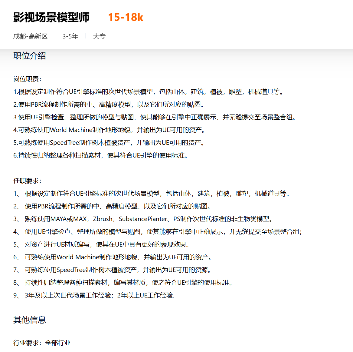 ✍️3D制作:Maya、ZBrush、Blender、Houdini(特效)、Substance Painter(贴图);