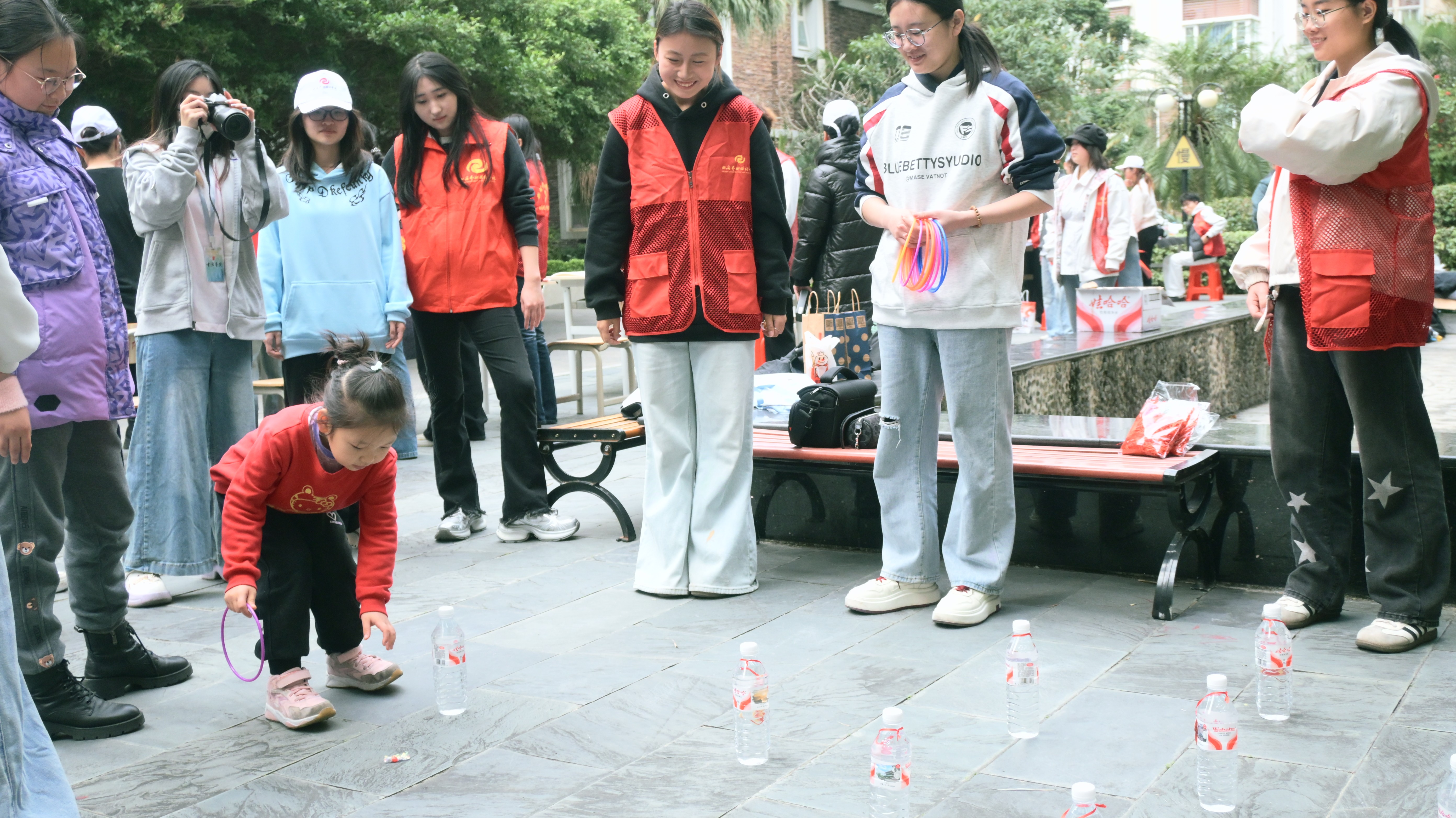 趣味套圈活动区同样欢声不断,志愿者们与社区儿童亲切互动,在游戏中传递温暖,融洽了邻里关系,营造出浓厚的节日氛围。