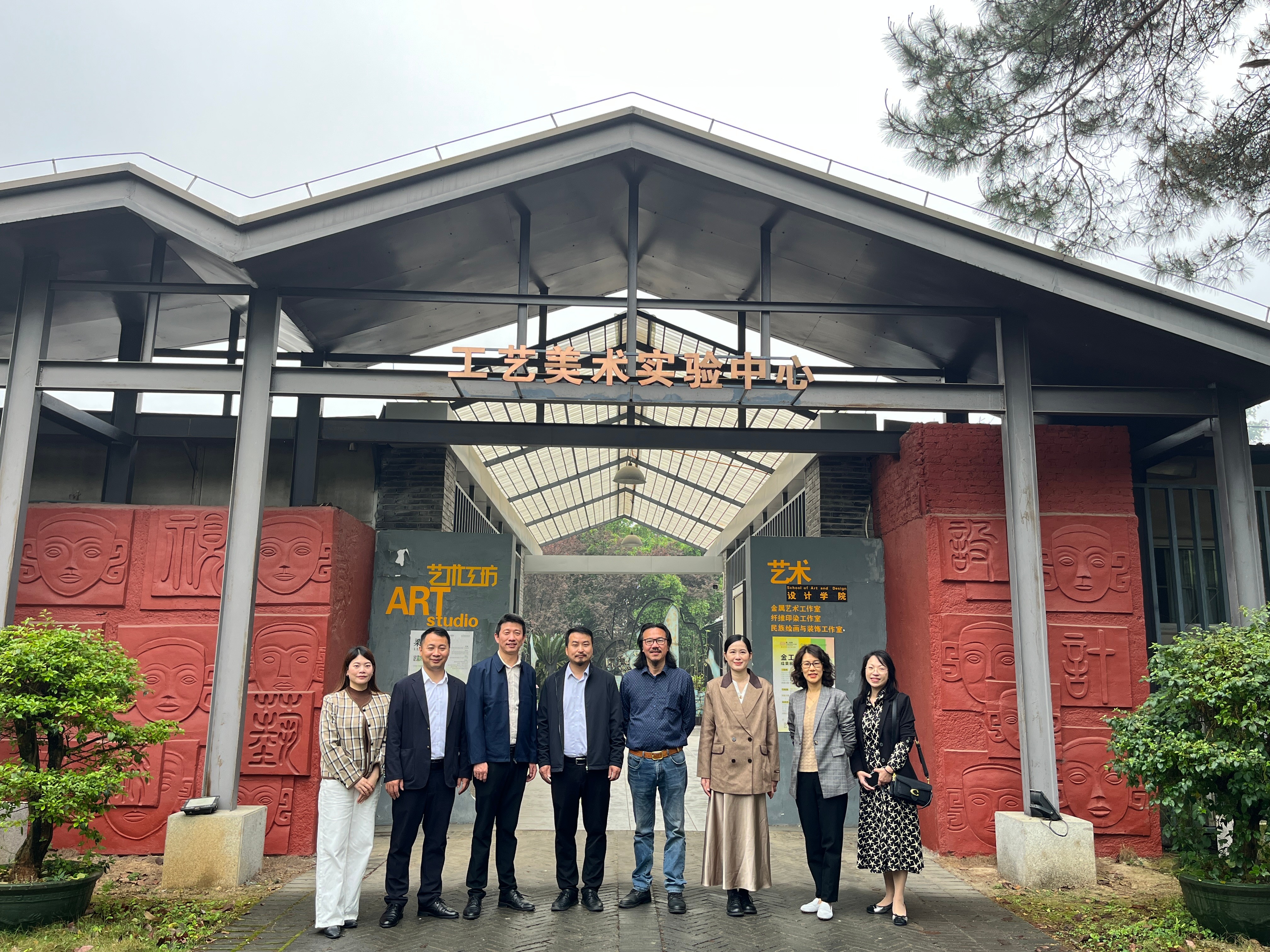 4月10日上午,调研组前往桂林旅游学院艺术设计学院。在院长韦剑华、视觉传达设计专业教研室主任梁晓宇的陪同下,调研组参观了工艺美术实验中心、陶艺实验室、广西旅游博物馆、工艺美术工作室、西南民族非遗创新基地及视觉传达设计工作室等特色教学平台,现场观摩了“工作室”模式下学生的教学场景,重点调研“工作室+非遗创新”特色教学模式,深入了解理论与实践紧密结合的育人模式。随后,与该院副院长聂辉及骨干教师座谈。会上就“优化人才培养课程体系”“强化人才培养与产业对接”“推进学科建设与校企合作”“探索人工智能融入课程教学”等方面展开了全方位、深层次的探讨,并就虚拟教研室联合建设和教学成果奖培育达成初步合作意向。该院的工作室教学模式为我院拓宽人才培养路径提供了有益借鉴。