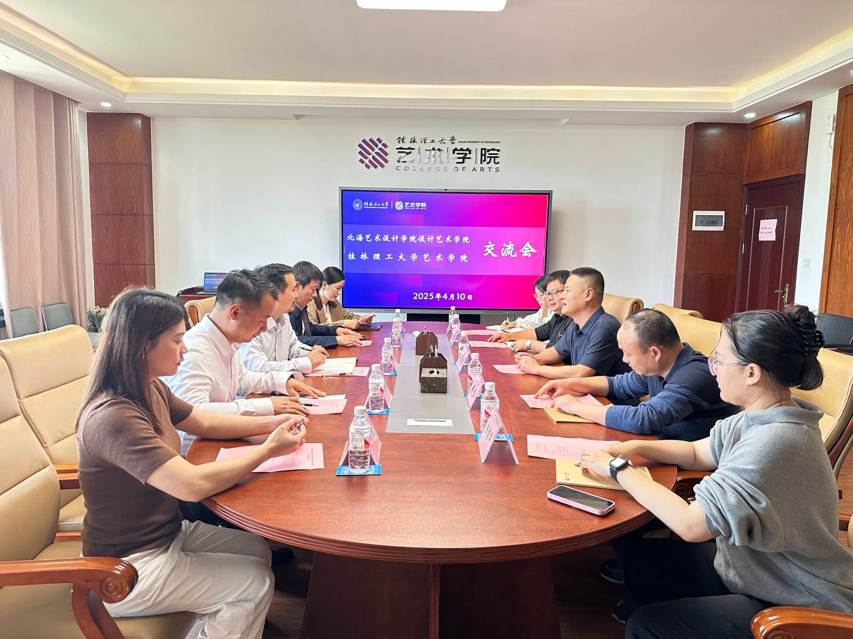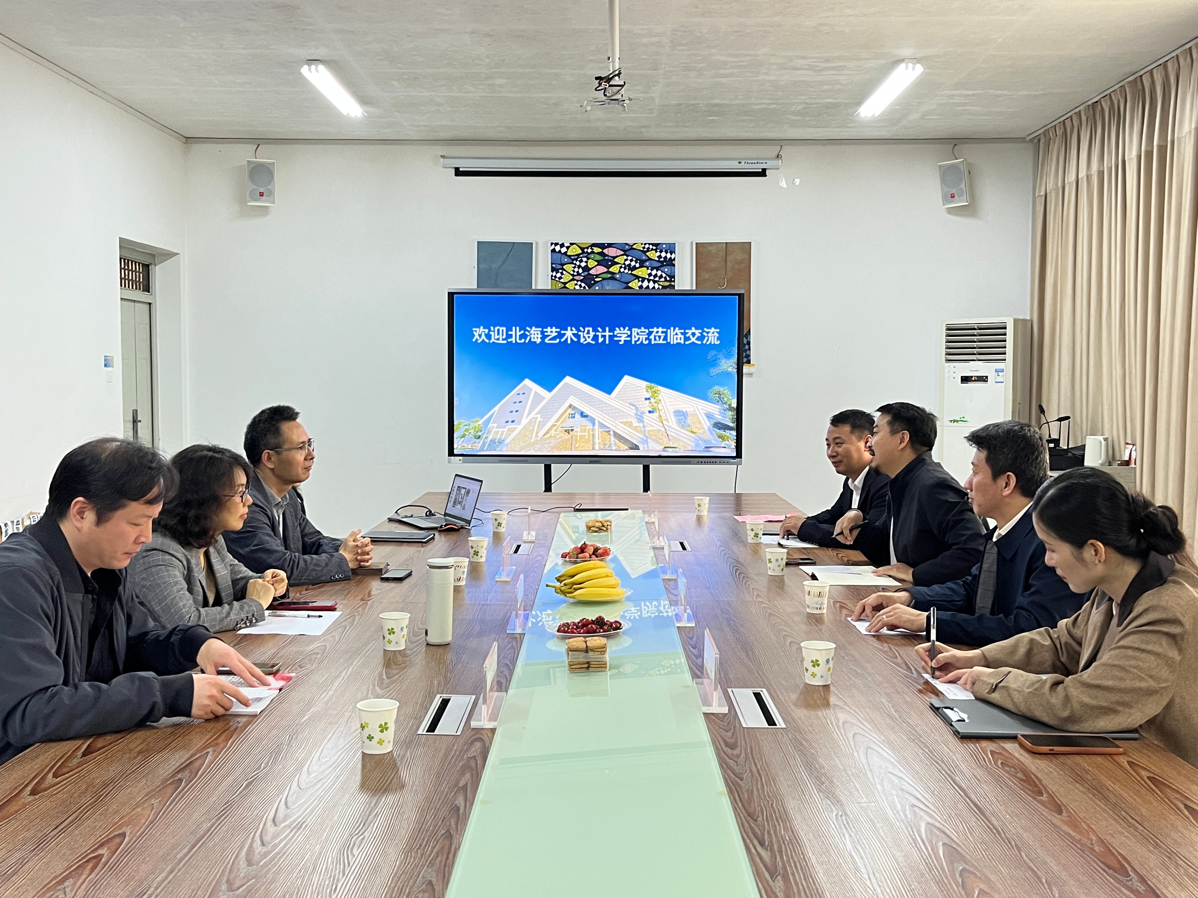 当日下午,调研组转赴桂林理工大学艺术学院。在孙远志院长、副院长周屹、符晗等老师的陪同下参观了学院艺术馆,实地参观了该院在艺术教育领域的教学成果展示。随后,双方举行了专题座谈会,双方围绕“交叉学科人才培养策略”“课程群与模块化课程体系建设”“专业数智化转型与升级”“数智化教学方法创新改革”等前沿话题展开交流,并表示将进一步加强两院的交流与合作。