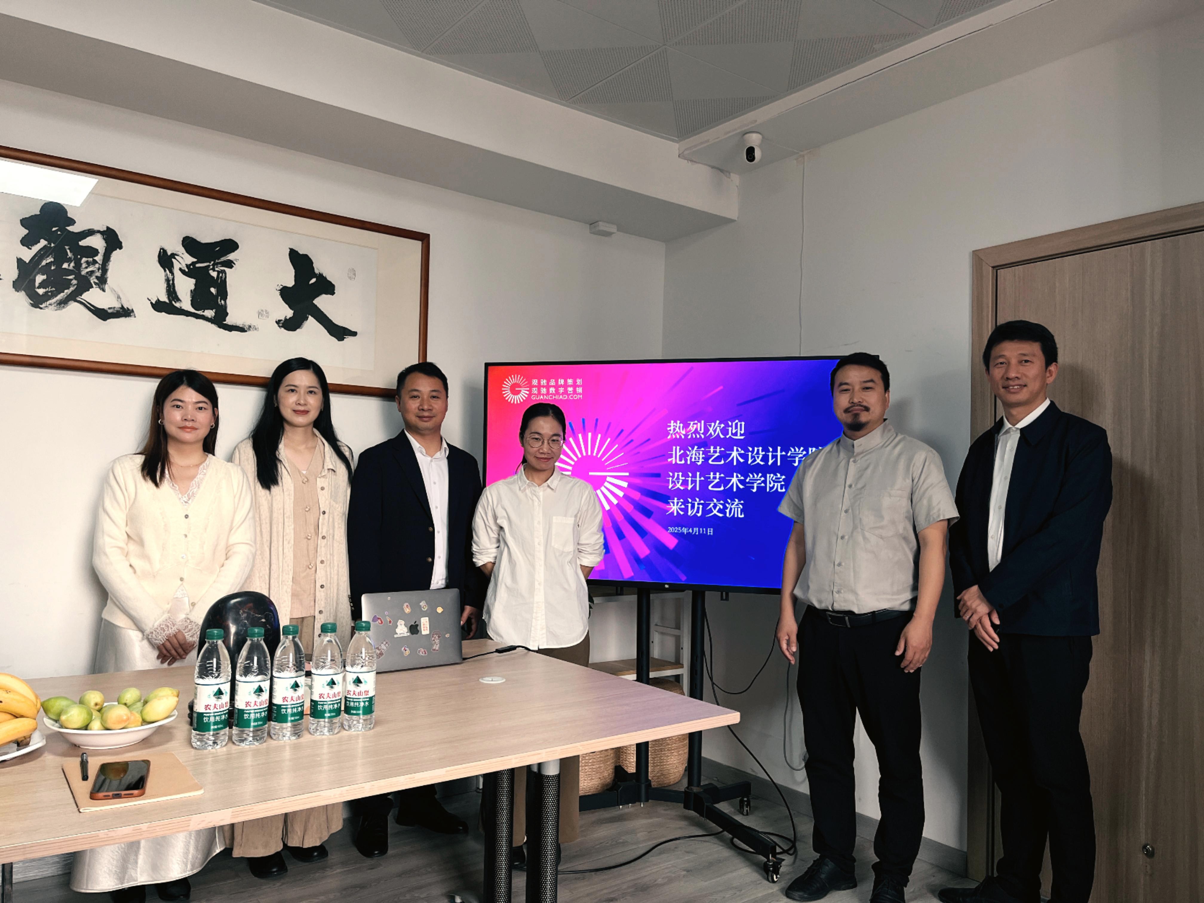 4月11日上午,调研组赴广西观驰品牌策划有限公司开展调研,深入调研人工智能时代品牌设计行业的人才需求与培养路径。调研组在品牌策略总监兼新媒体事业部负责人李香、创意设计总监陈东的陪同下,参观了企业服务品牌的创新产品体系及包装设计案例库。随后座谈会上,企业负责人重点介绍了短视频、社交媒体等新媒体渠道对品牌传播的关键作用,提出“复合型人才能力矩阵”需求,强调品牌战略思维、数据化运营能力和跨媒介创意表达等核心素养。这些行业新要求为学院优化人才培养方案提供了重要参考。