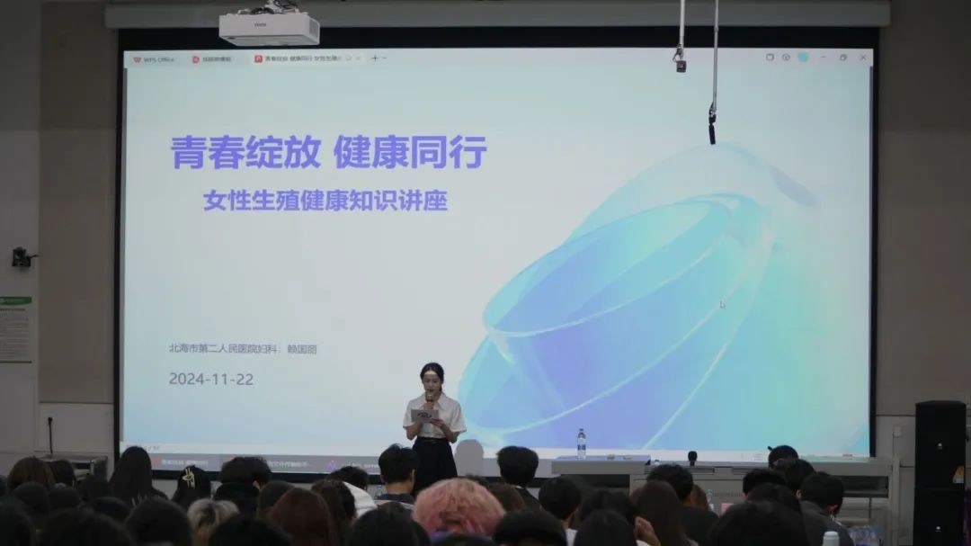 为进一步提高女性生殖健康知识知晓率,关爱女性健康,树立科学预防艾滋病及其他妇科疾病的意识,11月22日,我校于公德楼107举办了“校园无艾·青春有爱”性与生殖健康、女性生理健康、防艾禁毒主题讲座,为此特邀北海市第二人民医院妇科副主任医师赖国丽围绕主题“青春绽放,健康同行”进行了科普女性生殖健康专题讲座。