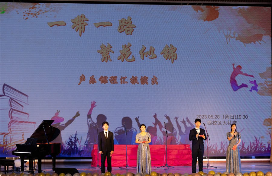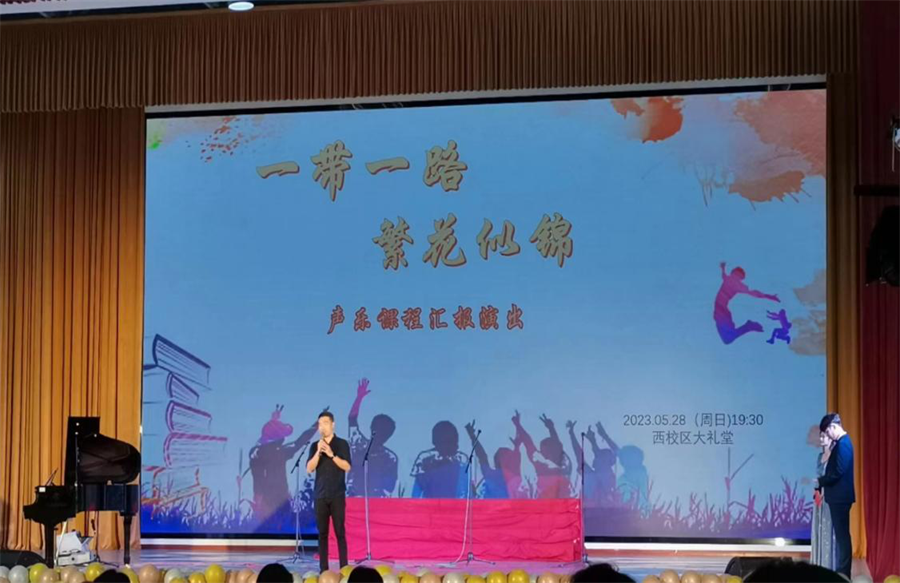 据悉,此次汇报演出由人文教育学院艺术教育教研室承办,艺术教育专业2020、2021级音乐班全体学生参演。演出以“一带一路,繁花似锦”为主题,学生为主、老师为辅,通过师生默契合作,歌声悠悠,青春浪漫,为现场观众奉上一场精彩绝伦的艺术盛宴,共同留下了美妙难忘的声乐记忆。
