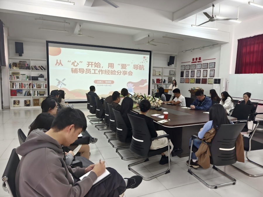 会上,2021级辅导员莫圆圆、2023级辅导员李炯菲先后进行了经验交流与分享。