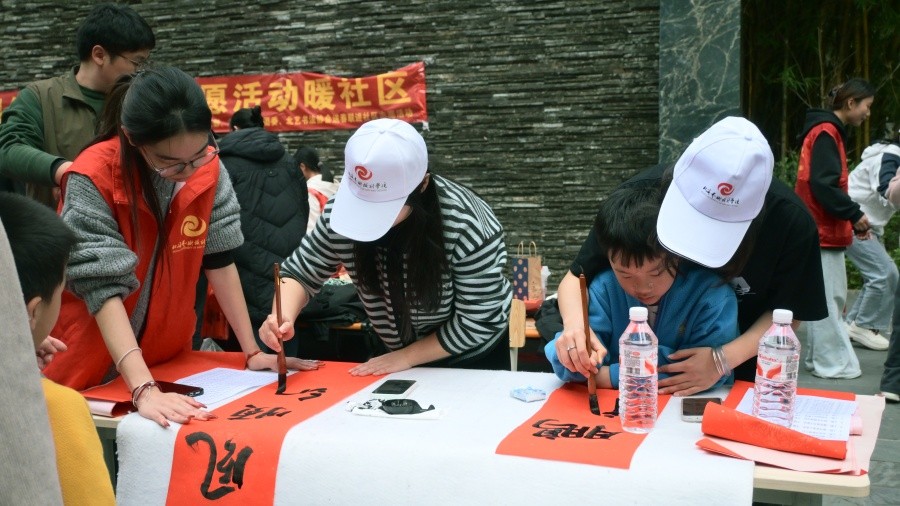 1月25日,橄榄苑社区内翰墨飘香、暖意融融。书法学院党支部联合学院分团委、北艺书法协会共同开展“翰墨传情迎新春”志愿活动,组织师生走进基层社区,以笔墨承载文化,以专业服务社会,为居民群众送上充满温度的新春祝福。