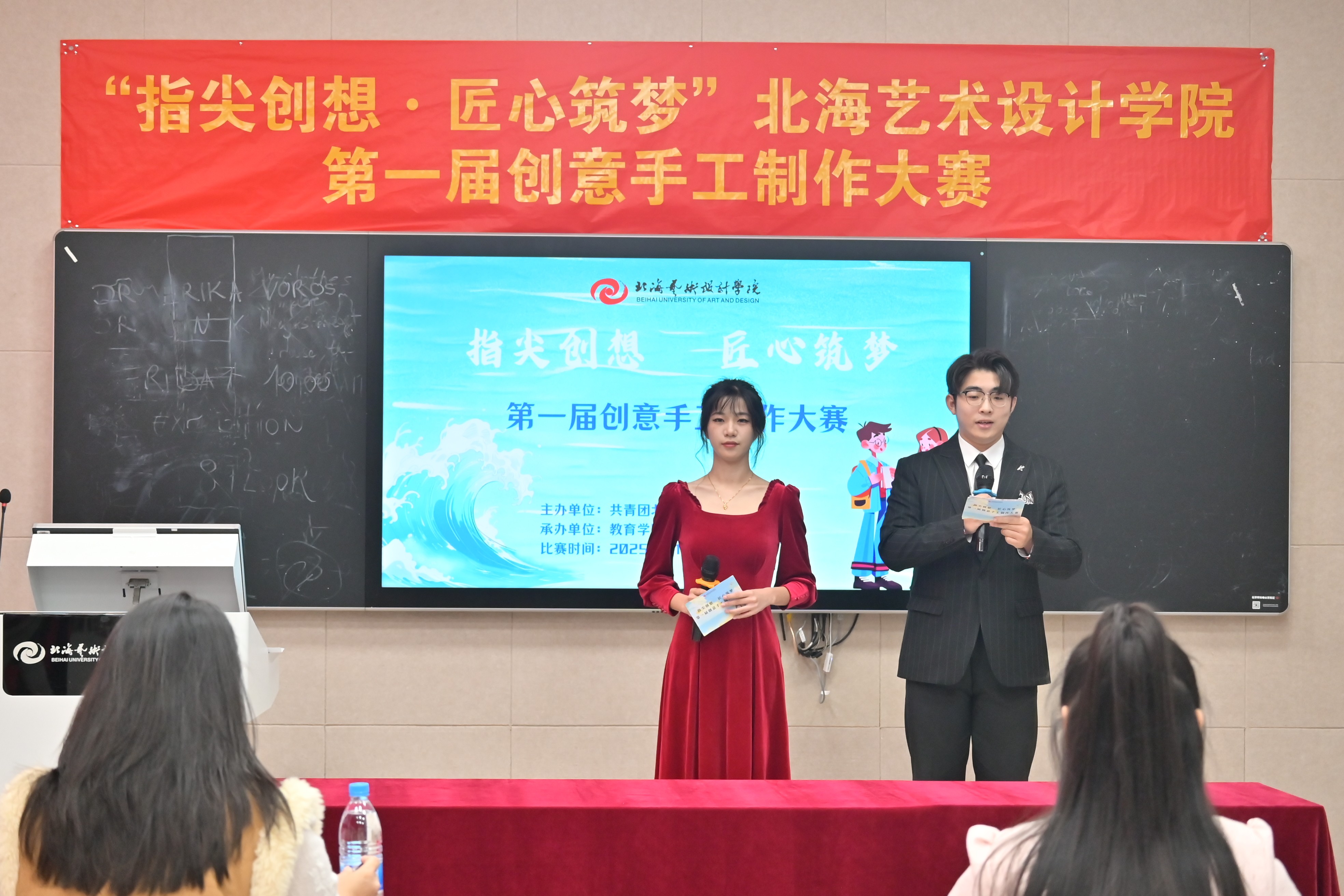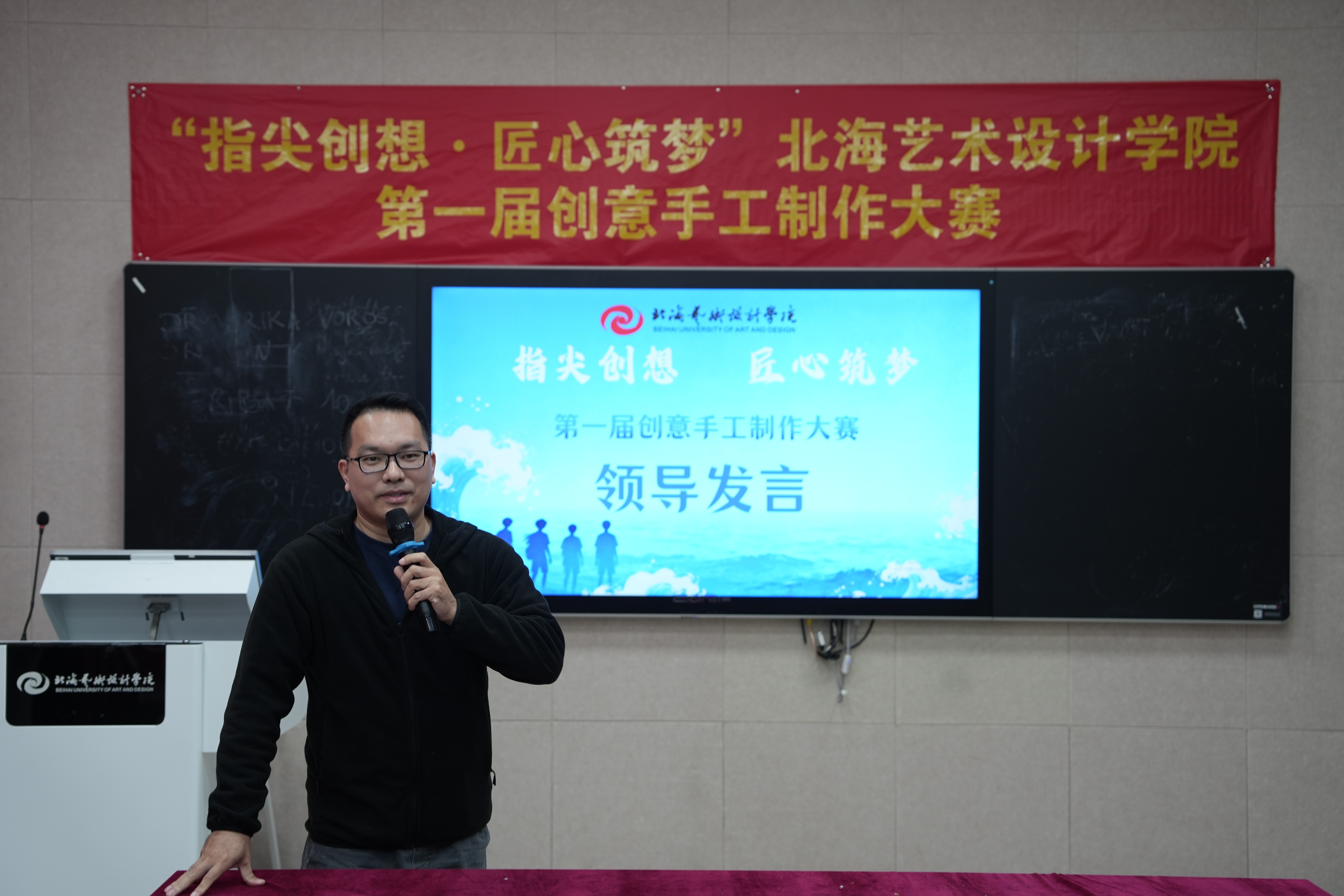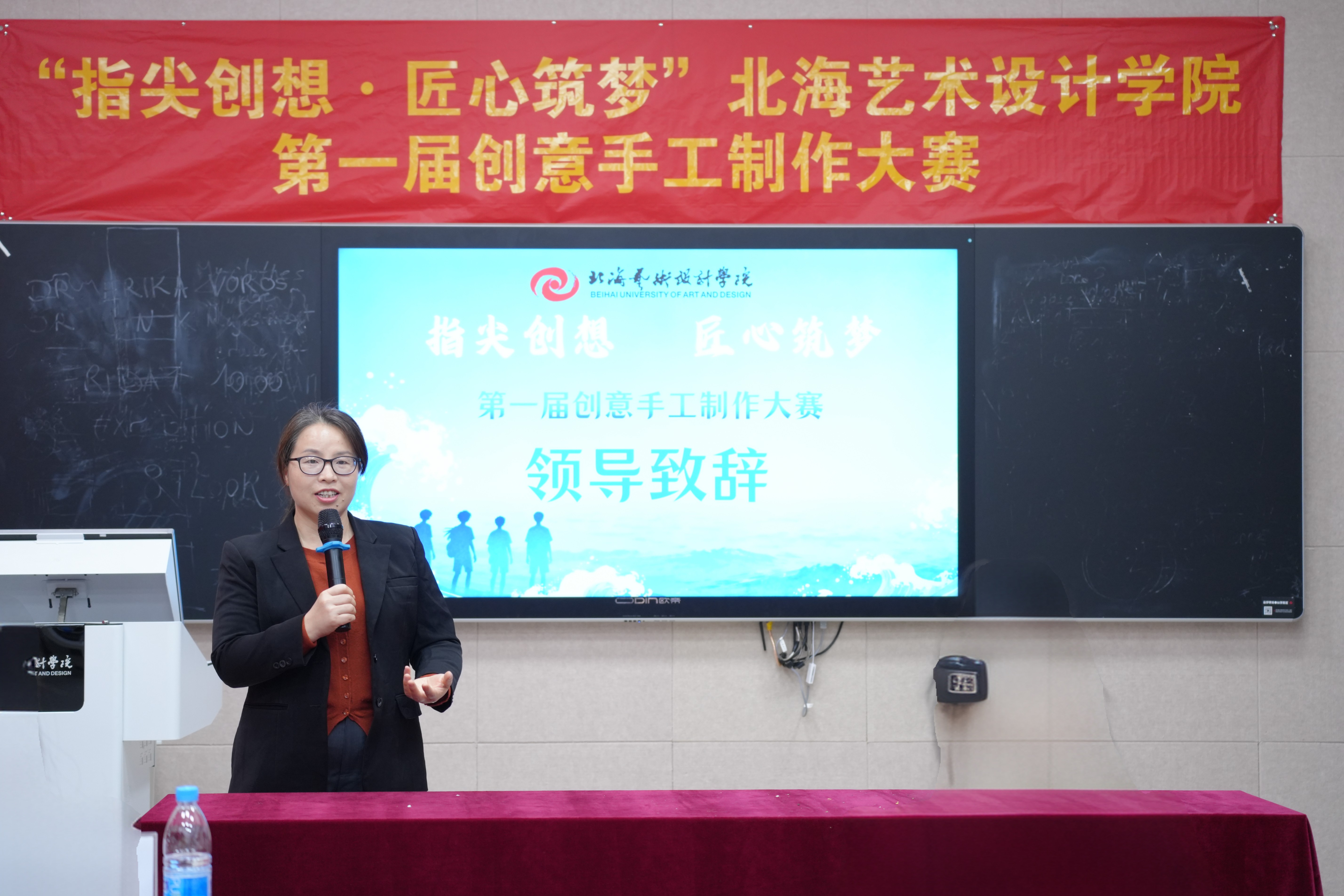 决赛前,教育学院院长熊秀峰在致辞中表示,本次大赛为学校各专业融合和交流提供了重要平台,是学校应用型人才培养的具体举措。她寄语学子坚守匠心、扎根北海本土文化,融入环保与科技理念,以赛促学、锤炼本领,并预祝选手取得佳绩。